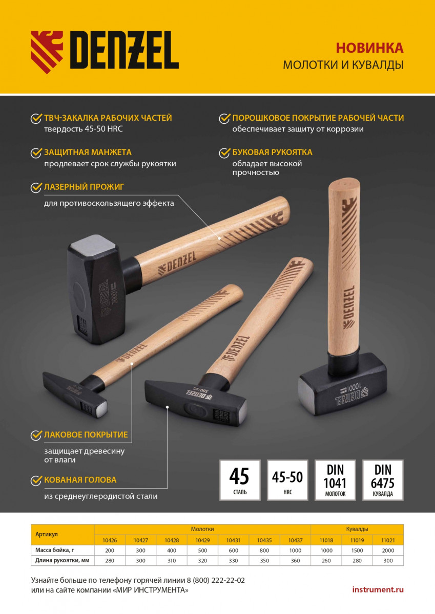 Кувалда Denzel 11018 с буковой рукояткой и кованой головкой весом 1000 г предназначена для нанесения несильных точных и аккуратных ударов, придания формы металлическим заготовкам, проведения сборочных и демонтажных работ. Инструмент подходит для бытового и профессионального применения.