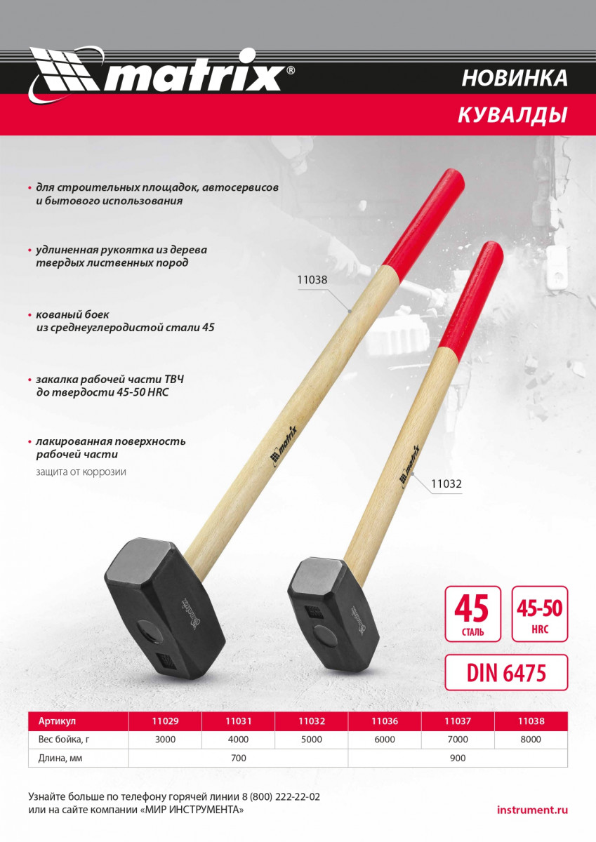 Кувалда Matrix 11029 длиной 700 мм, с кованой головкой весом 3000 г и деревянной рукояткой, — ударный инструмент, позволяющий демонтировать бетонные, каменные и кирпичные конструкции, а также проводить сборочные работы. Удлиненная рукоятка повышает силу наносимых ударов, кованая головка обеспечивает надежность и долговечность инструмента. Кувалда применяется при проведении строительных работ, будет полезна в гараже или на загородном участке.