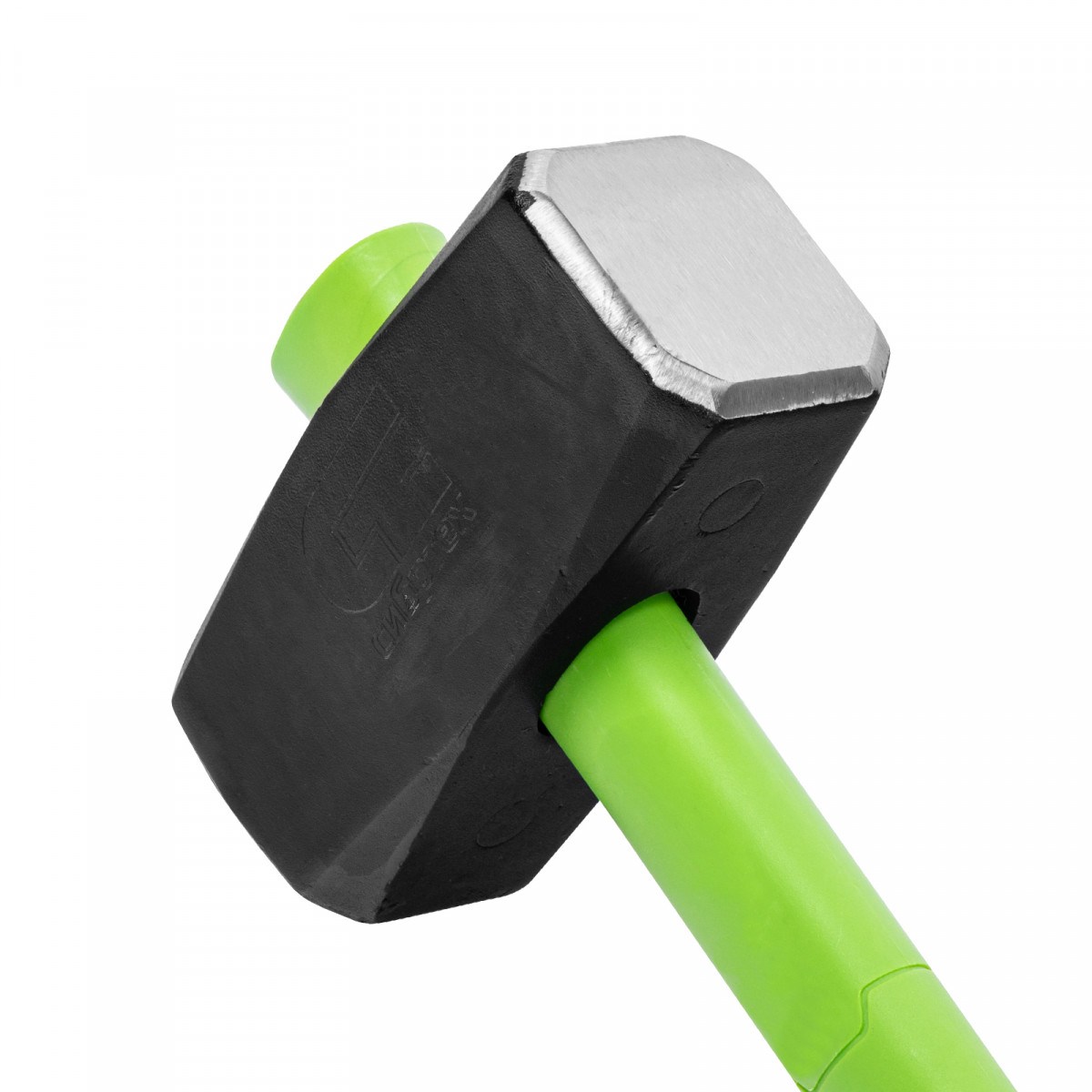 Кувалда Сибртех 10898 длиной 890 мм и весом 7000 г, с фибергласовой обрезиненной рукояткой, предназначена для демонтажных работ — разрушения камня, кирпича, бетона. Удлиненная рукоятка позволяет наносить удары большой силы, а прочный кованый боек не подвержен деформациям. Кувалда рекомендована для профессионального применения.