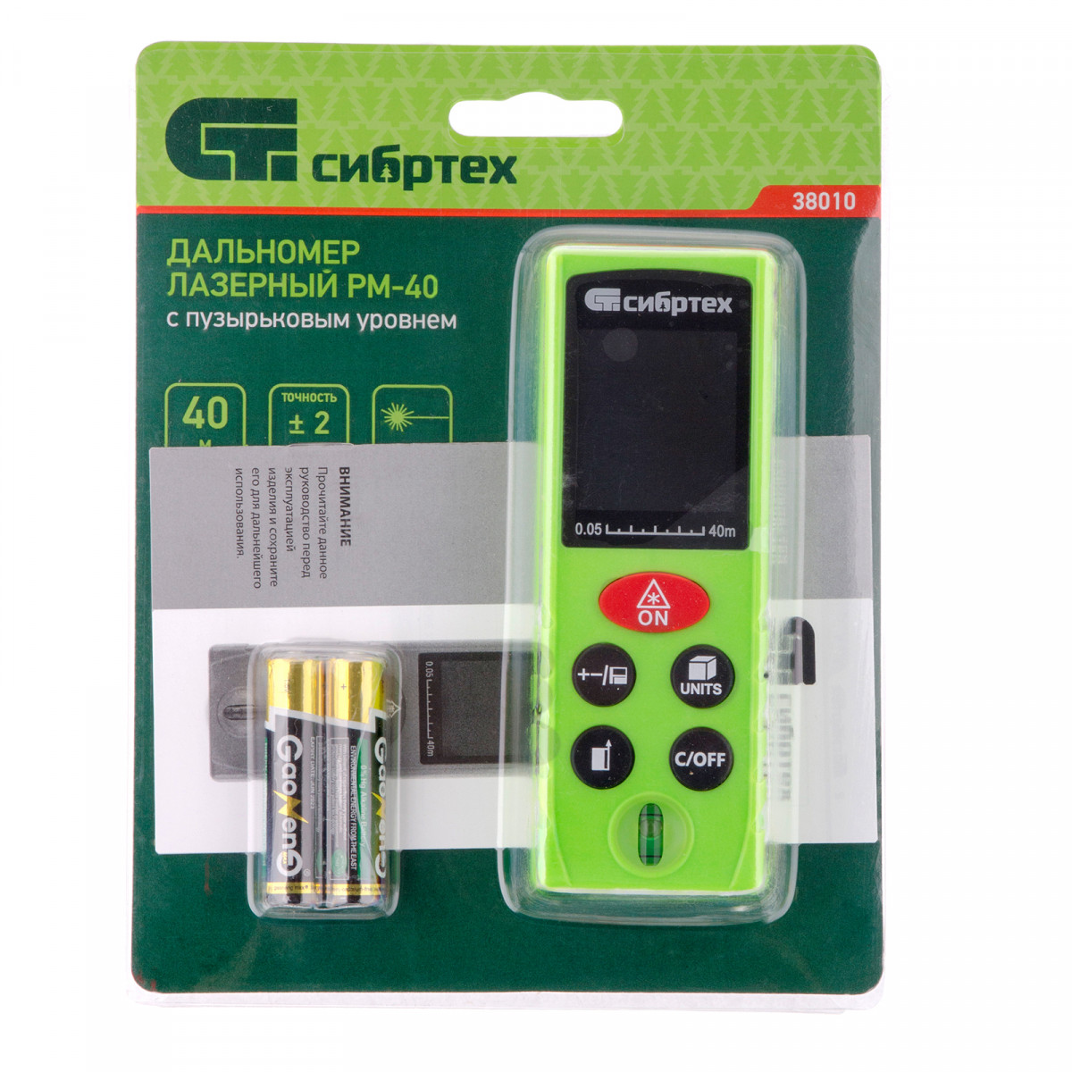 Лазерный дальномер PM-40,40 м,с пузырьковым уровнем Сибртех