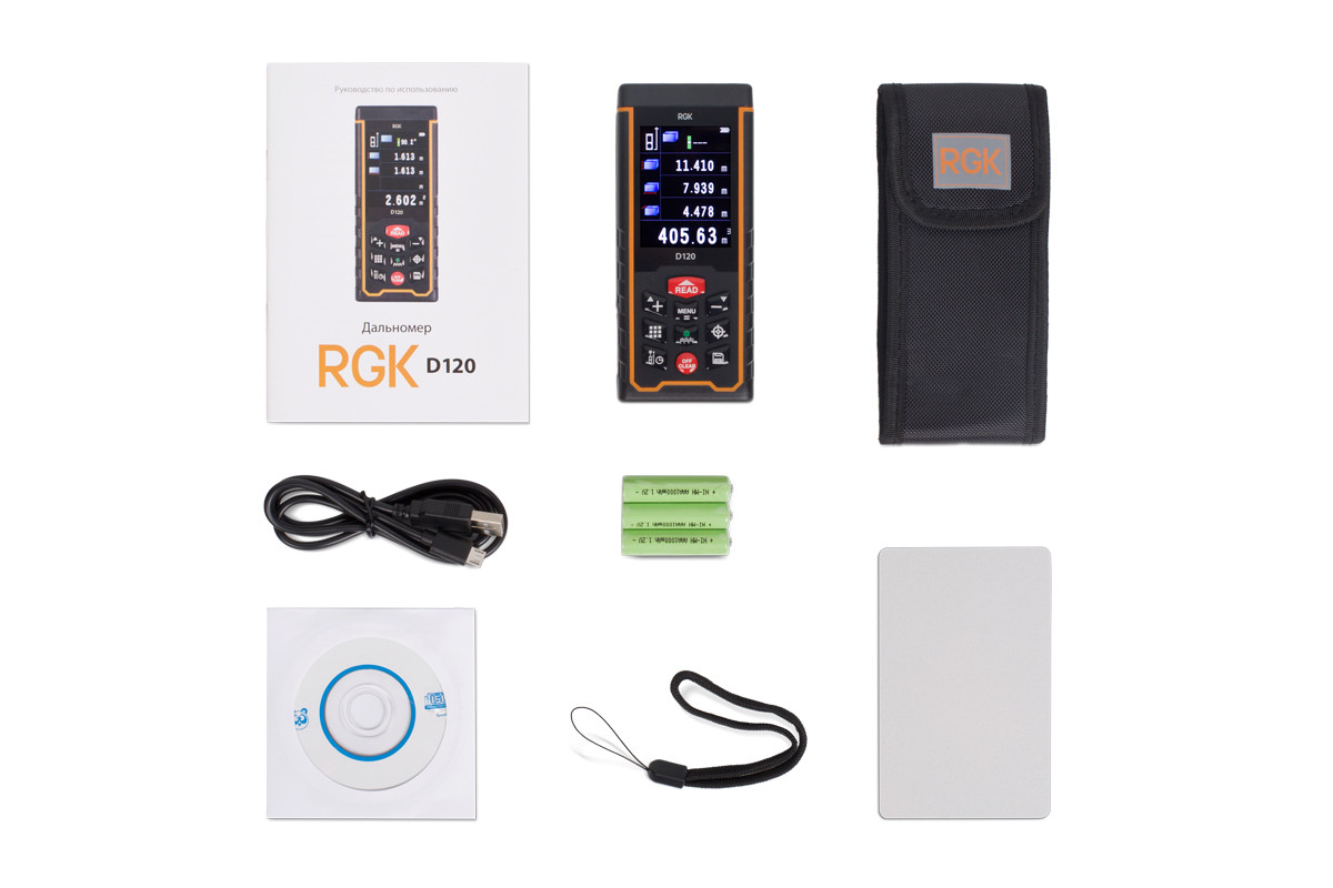 Лазерная рулетка RGK D120 предназначена для измерения расстояния в диапазоне от 0.3 до 120 метров в помещениях и на открытом пространстве. Она поддерживает следующие функции: вычисление площади и объема, расчет недосягаемых расстояний по теореме Пифагора, сложение и вычитание измерений, измерение заданного расстояния, измерение с задержкой, режим непрерывных измерений. Данная модель имеет возможность подключаться к ПК для анализа и передачи данных. При помощи встроенного цифрового уровня можно производить измерения в горизонт. Угол наклона - ±90°.