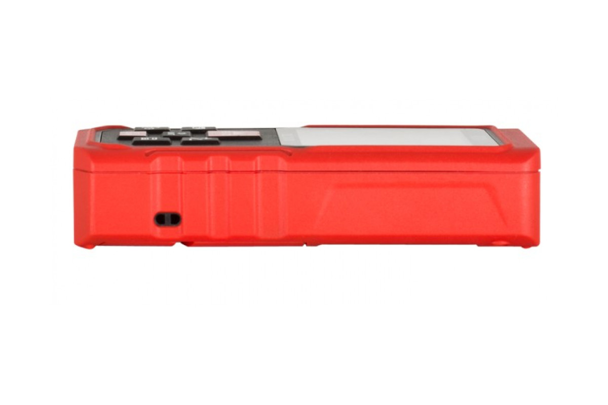 Много полезных функций косвенных измерений, высокая точность, есть встроенный угломер, удобно помещается в руке. Яркая красная расцветка. Качественная сборка. Отображение минимального и максимального расстояния.