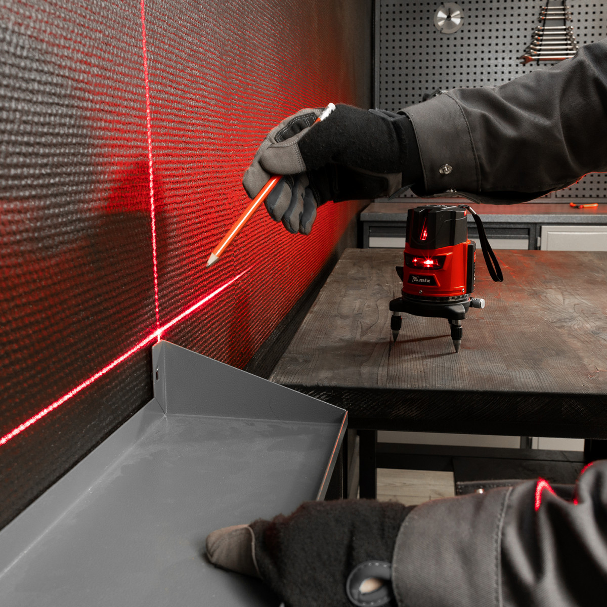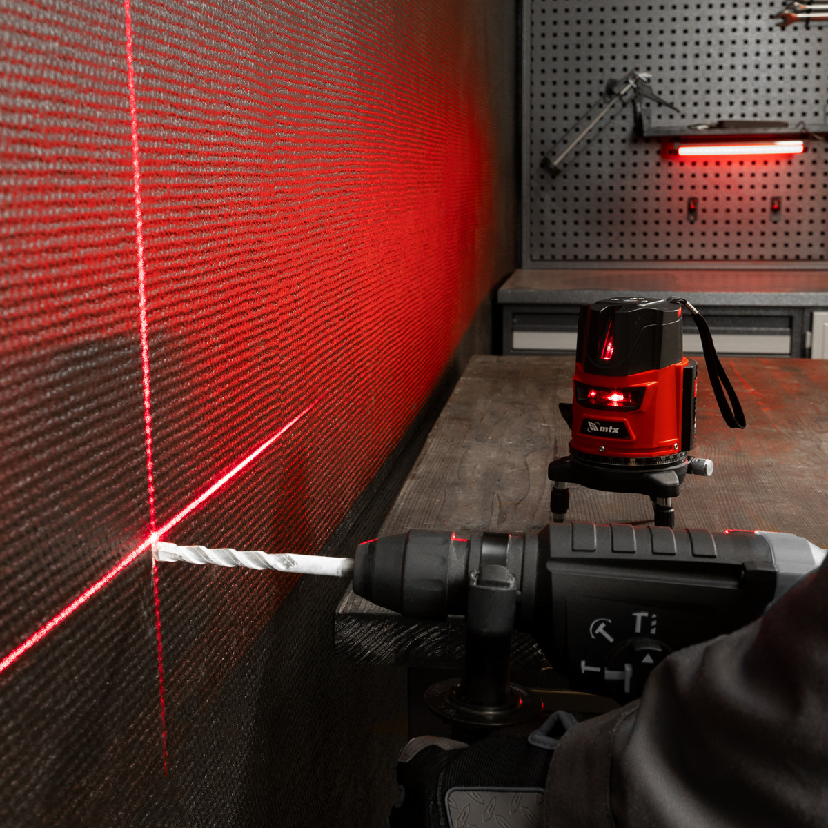 Лазерный уровень MTX CRX-30R 35030 с красным лучом, резьбой под штатив 5/8″, в комплекте с батарейками, проецирует на поверхность горизонтальную, вертикальную линии или крест дальностью до 30 м. Используется при проведении бытовых ремонтно-строительных работ в помещениях. Погрешность измерений составляет всего лишь ±1,5 мм 5 м.