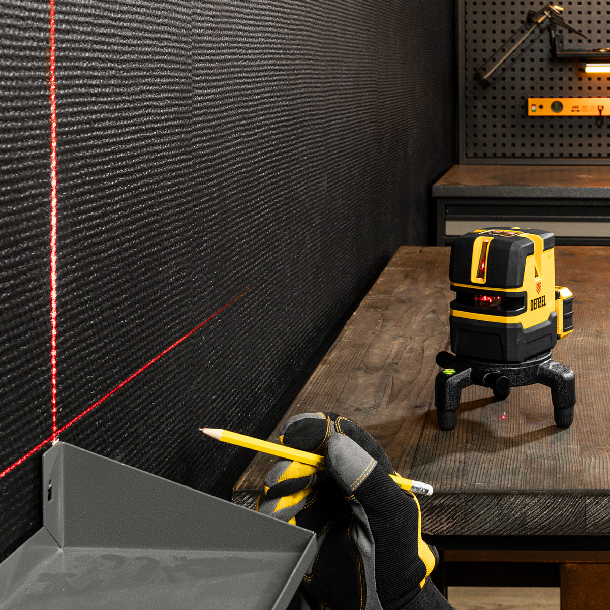 Лазерный уровень LX 05 Red, 20 м, 635 нм, аккумулятор Li 5200 mAh, резьба 5/8" Denzel