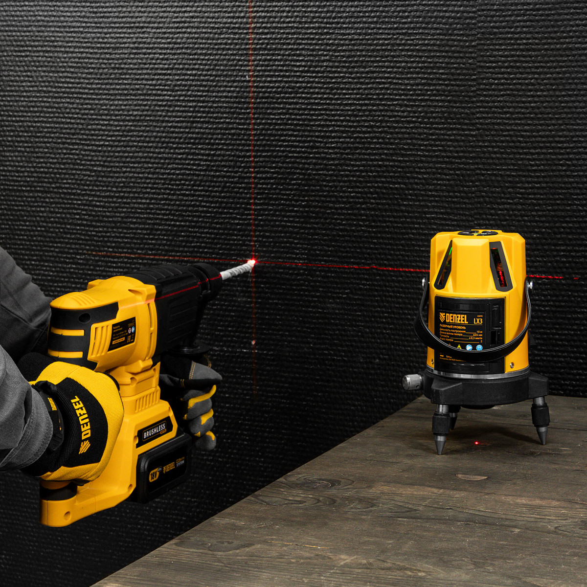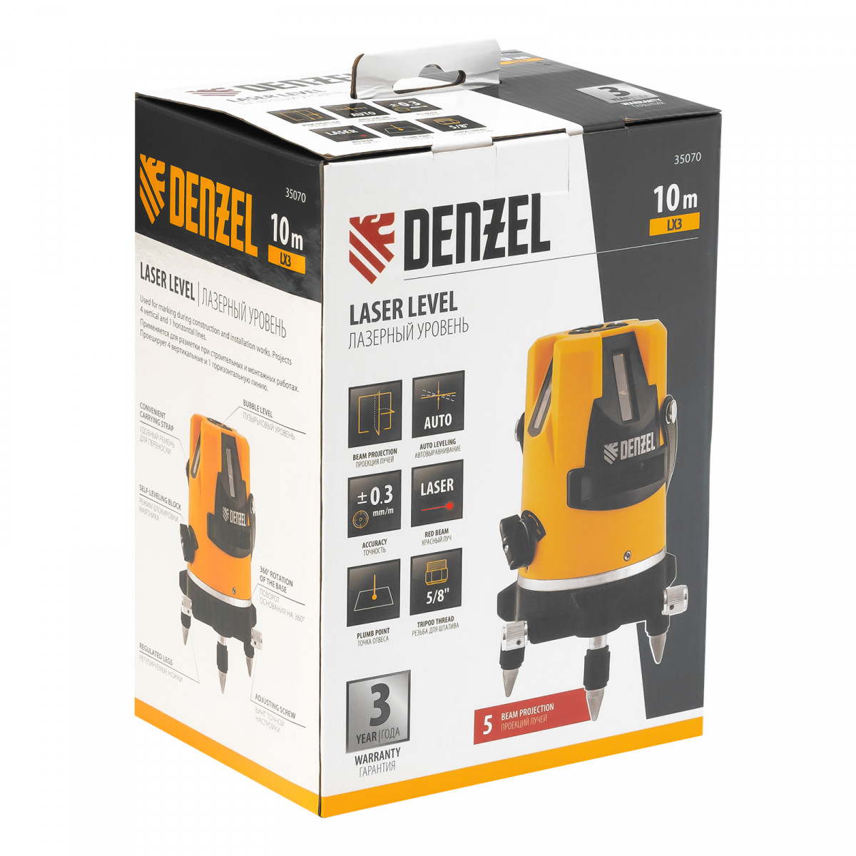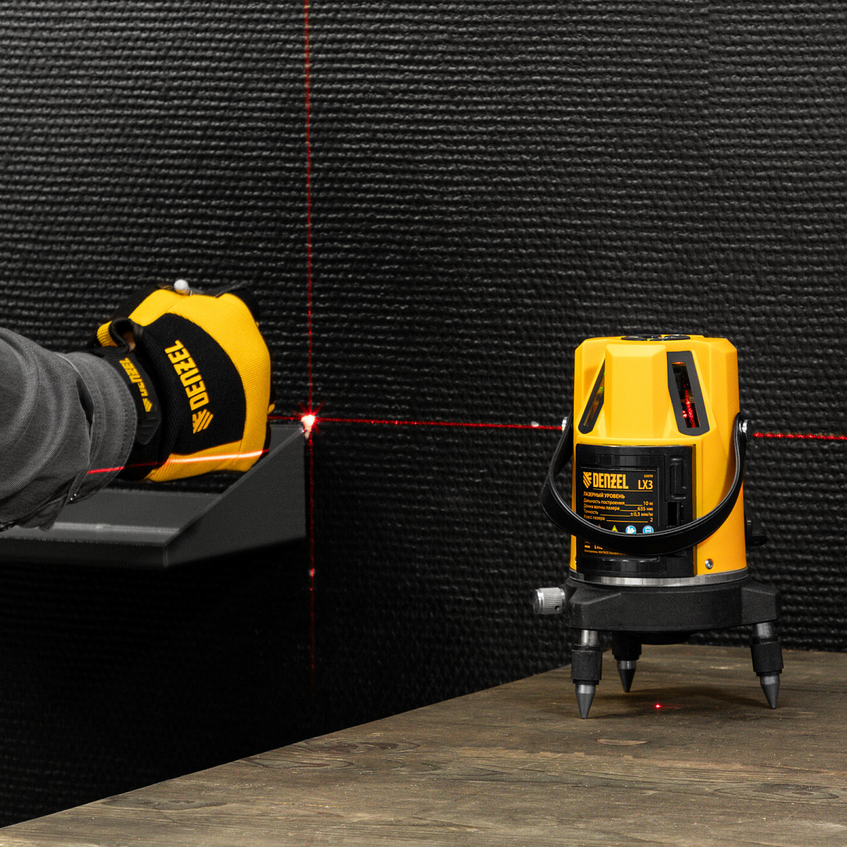 Лазерный уровень LX3, 10 м, ± 0,3 мм/1 м, 635 нм, 4 вертикальных, 1 горизонтальная плоскости, резьба 5/8" Denzel