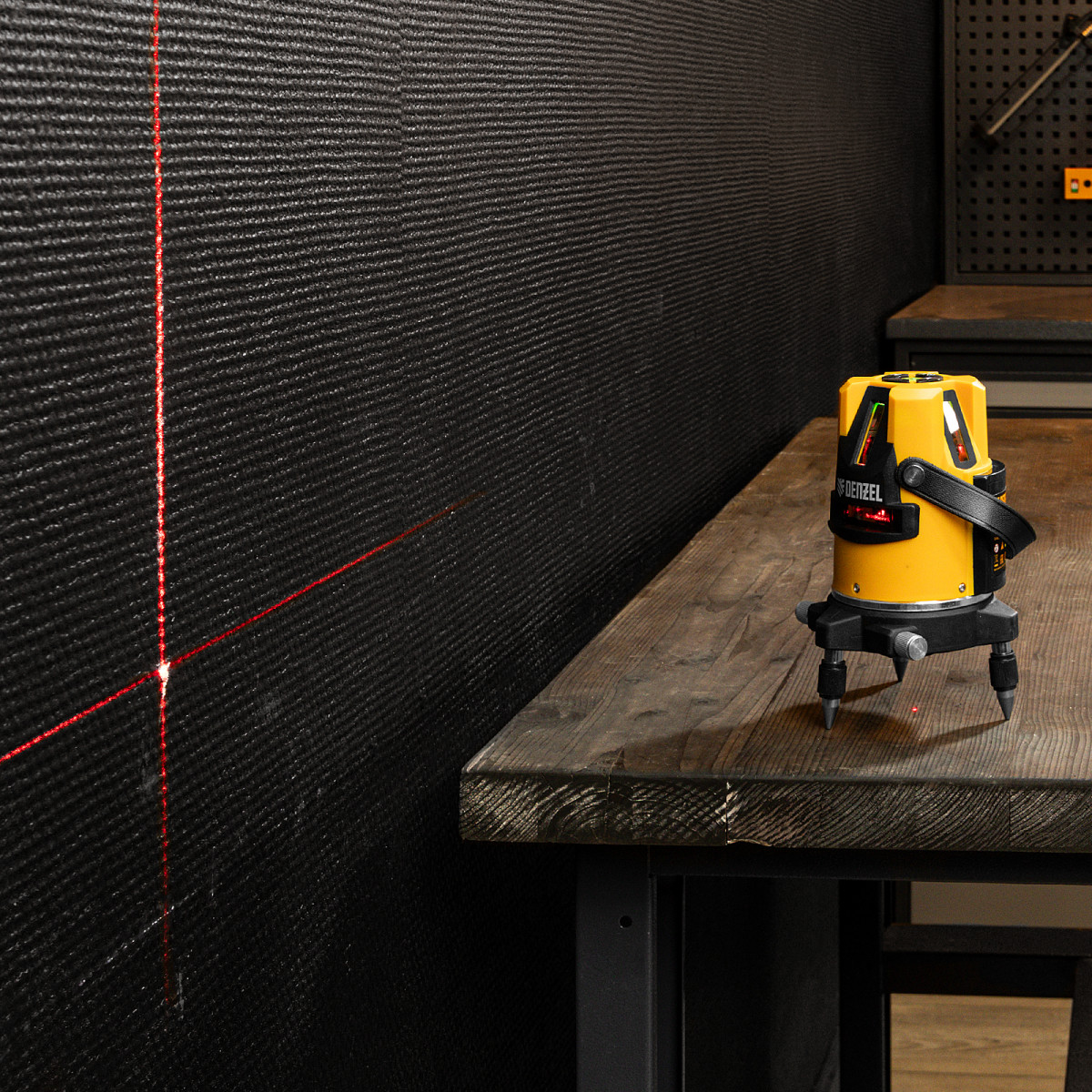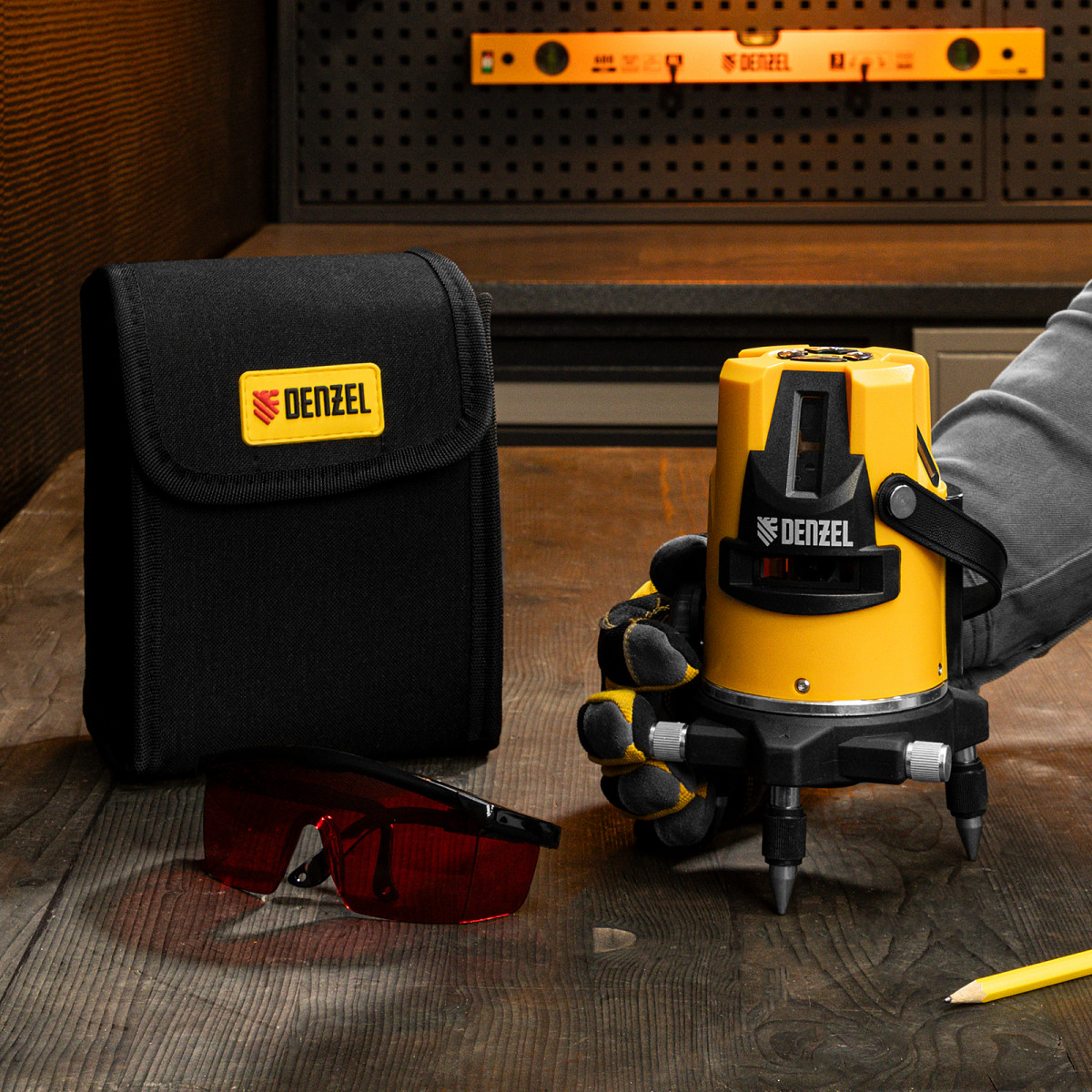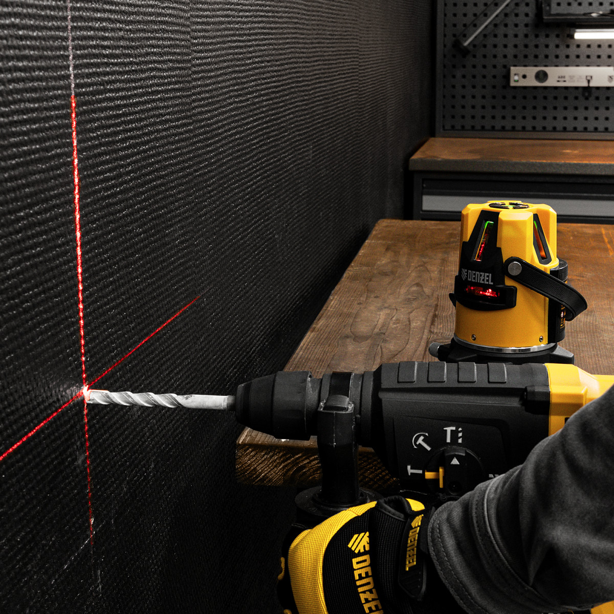 Лазерный уровень LX3, 10 м, ± 0,3 мм/1 м, 635 нм, 4 вертикальных, 1 горизонтальная плоскости, резьба 5/8" Denzel