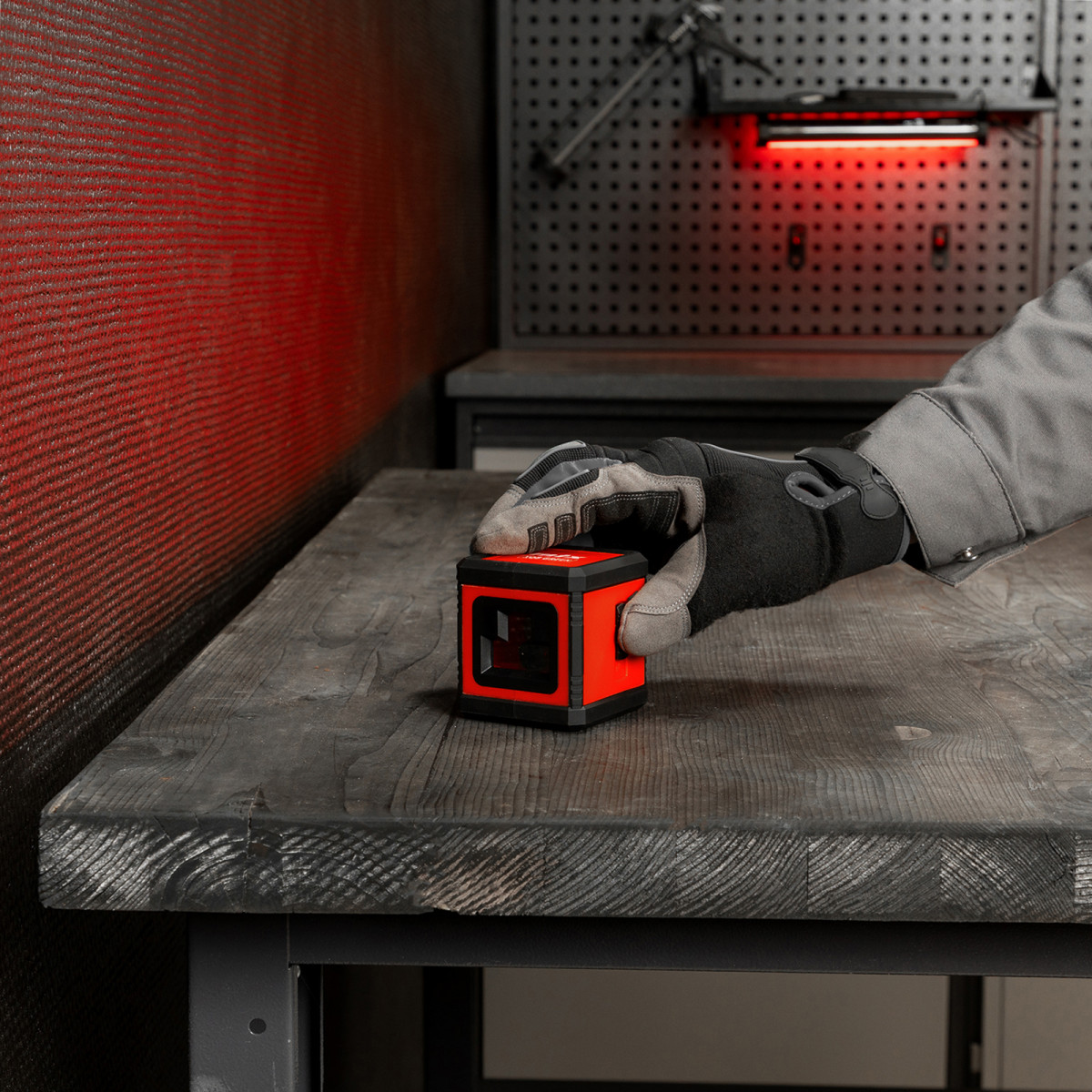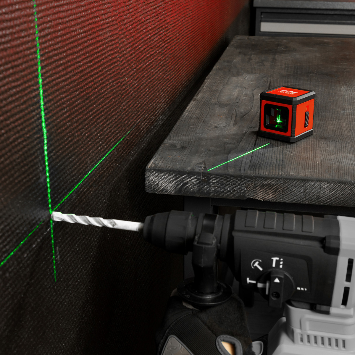- Надежность и долговечность — корпус дополнен специальными прорезиненными гранями, демпфирующими при падении лазерного уровня.
