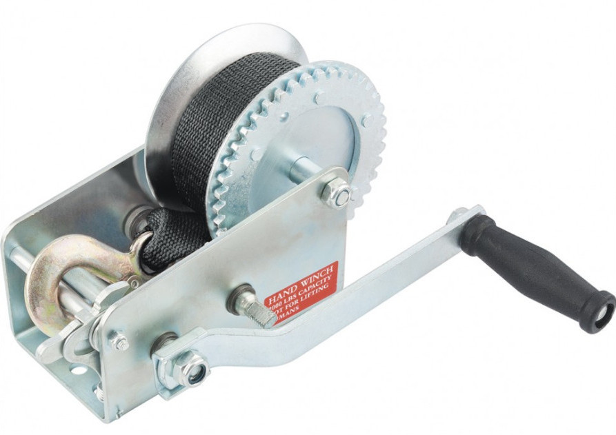 - Шестеренчатая лебедка имеет прочный стальной корпус и стальной шестеренчатый механизм, который приводится в движение вращением ручки.