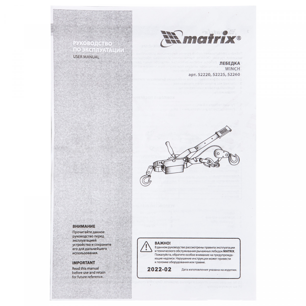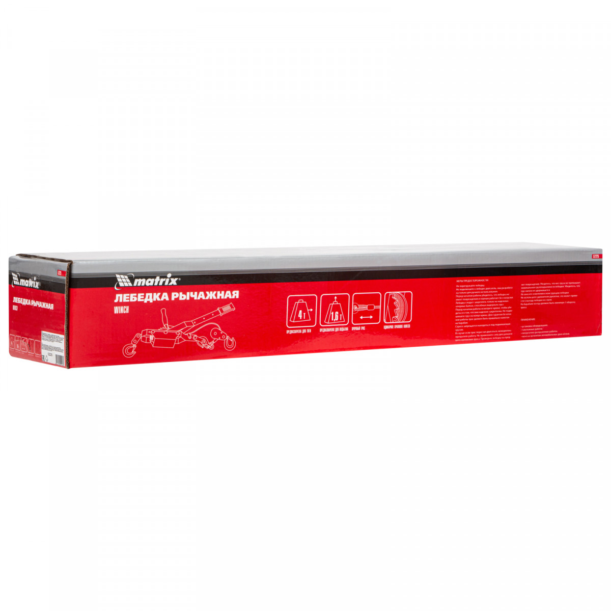 Рычажная лебедка Matrix 52225, тяга - 4 т, подъем - 1,6 т, с двойным храповым колесом, — это незаменимое устройство для автомобилистов. С его помощью можно эвакуировать автомобиль в условиях бездорожья и поднимать грузы в горизонтальном и вертикальном направлении при проведении строительных, монтажных и погрузочно-разгрузочных работ. Благодаря рычажному механизму лебедка проста в использовании и не требует больших усилий от оператора.