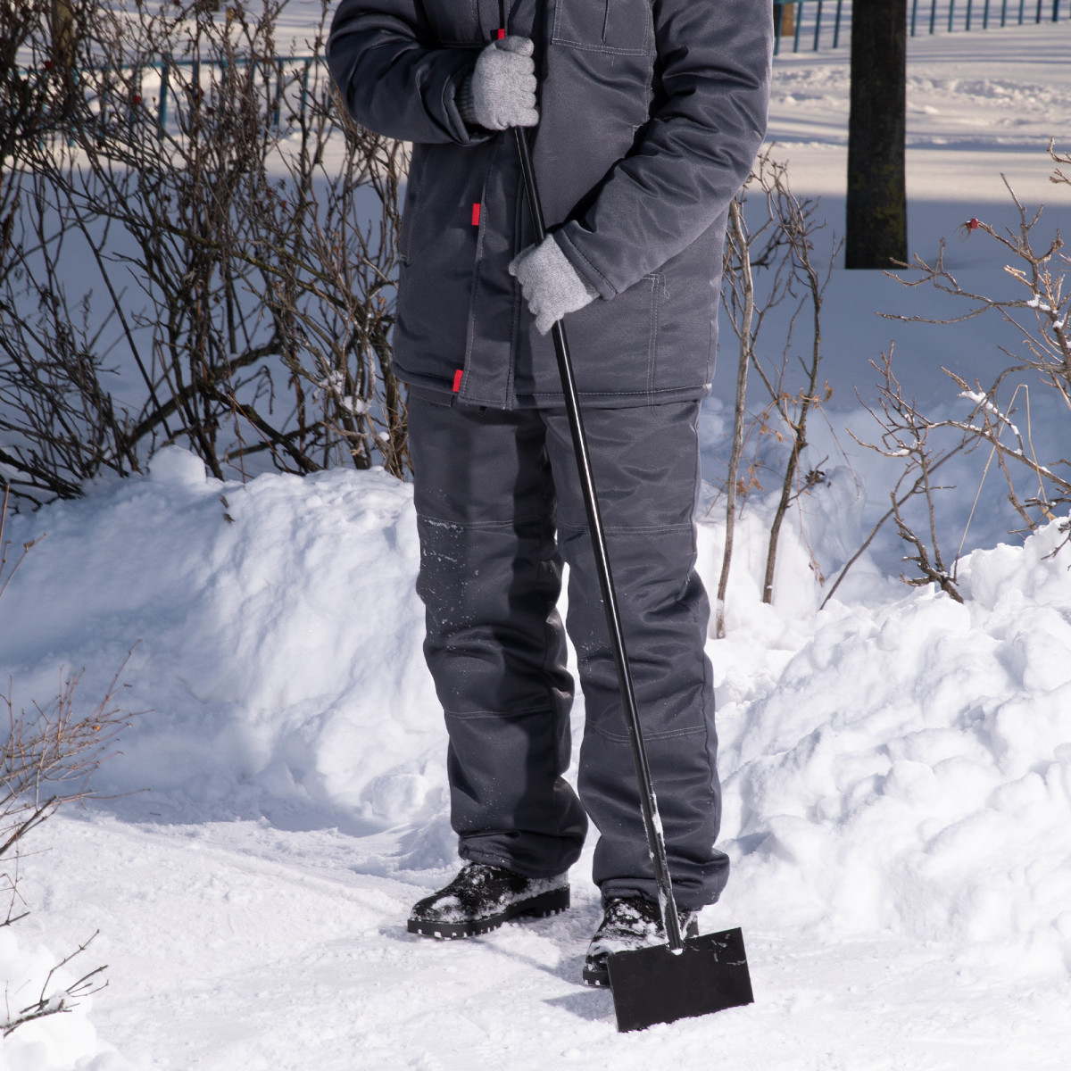 Ледоруб-скребок Сибртех 61524 шириной 200 мм и весом 1,1 кг, с металлическим черенком, используется для эффективного скалывания льда. С его помощью можно очистить ступени, дорожки, тротуары на даче, в саду, в гараже, дома. Ледоруб выдерживает морозы до -60 °С.