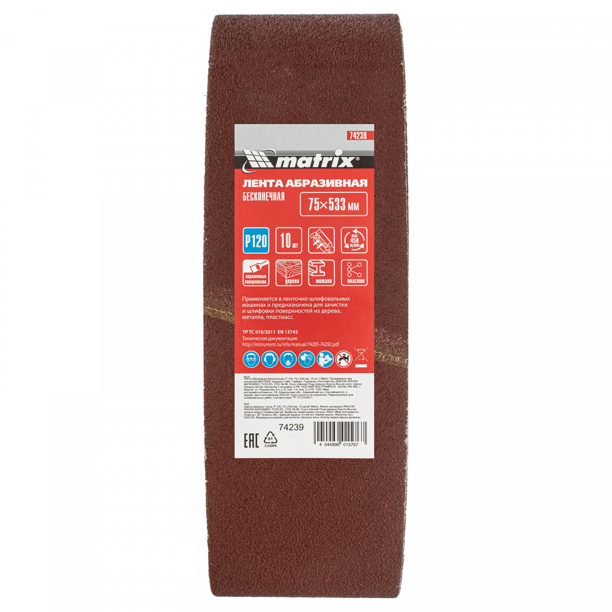 Лента абразивная бесконечная, P 120, 75 х 533 мм, 10 шт Matrix
