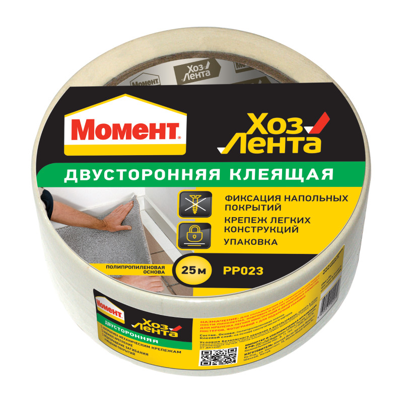 Лента клеящая 25 м. "ХозЛента Момент" двусторонняя