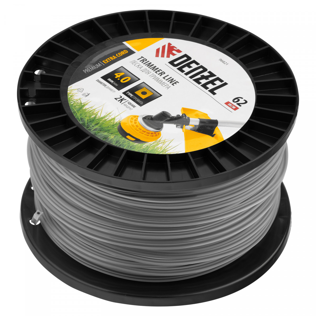 Леска для триммера двухкомпонентная квадрат, 4,0мм х 62м, на DIN катушке EXTRA CORD Denzel