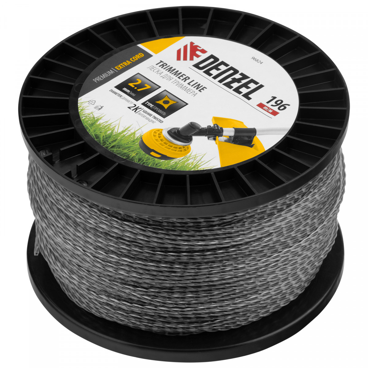 Леска для триммера двухкомпонентная витой квадрат, 2,7мм х 196м, на DIN катушке EXTRA CORD Denzel