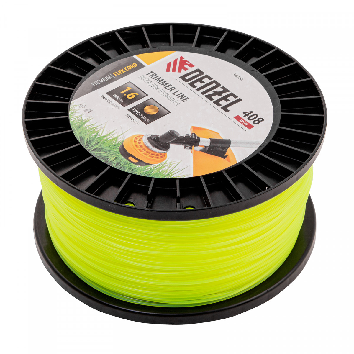 Леска для триммера круглая, 1,6мм х 408м, на DIN катушке FLEX CORD, Denzel