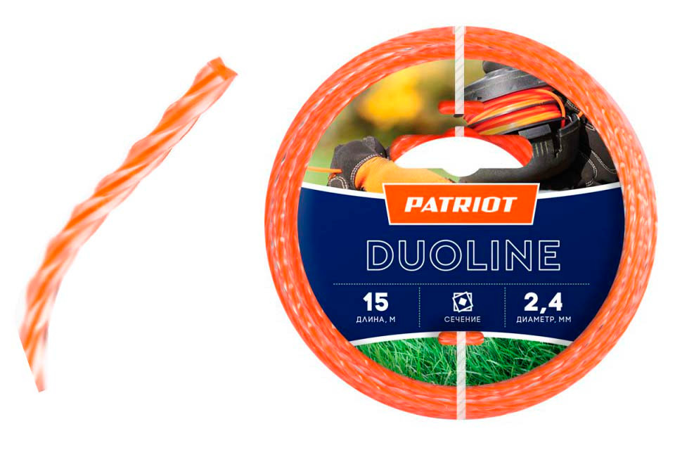 Леска триммерная D 2.4 L 15 м (скруч.квадрат, двухцвет.жила) Duoline