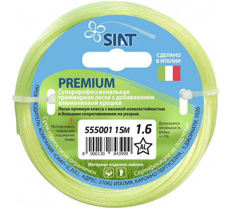 Леска триммерная SIAT PREMIUM Алюминиум D 1,6 мм 15м звезда
