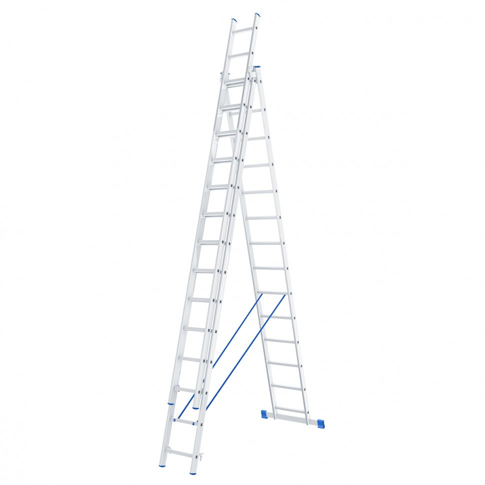 Лестница, 3 х 14 ступеней, алюминиевая, трехсекционная, Сибртех