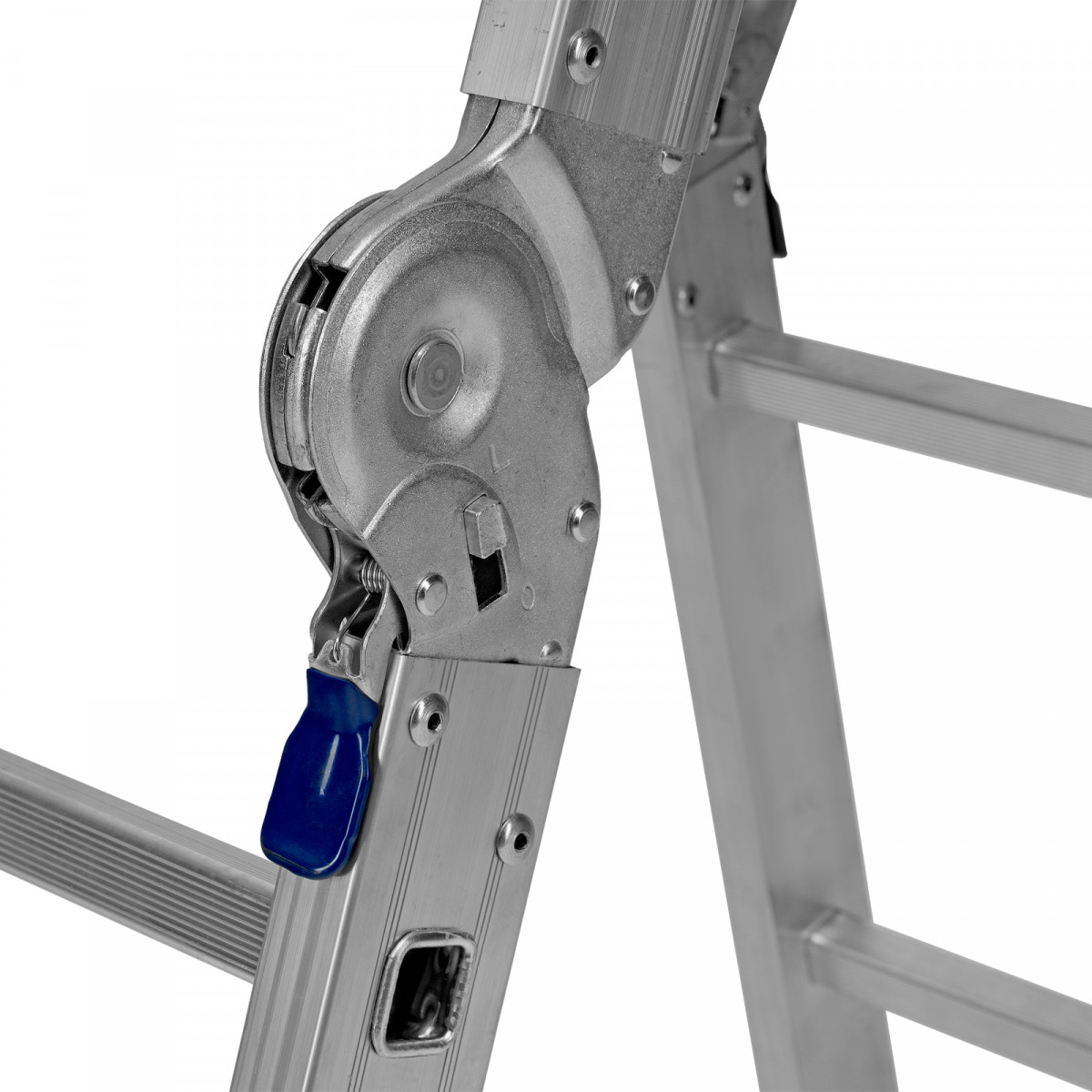 - Надежные шарнирные механизмы — лестница не шатается в рабочих положениях, смена рабочих положений происходит быстро и легко.