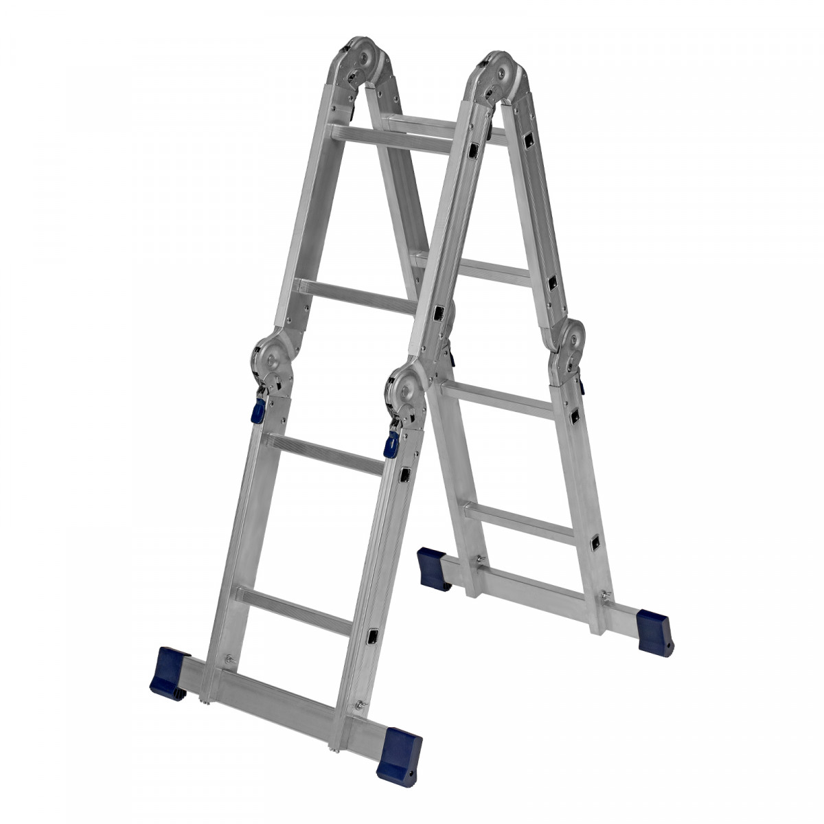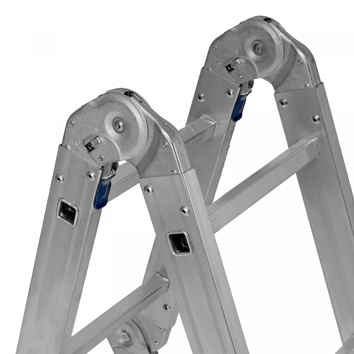Шарнирная алюминиевая лестница Сибртех 97879 представляет собой 4 секции по 2 ступени, которые можно настроить в нескольких рабочих положениях. Она может использоваться в качестве приставной лестницы, двухсторонней стремянки и помоста. Будет полезна как в быту, так и на небольших стройках, в гараже и магазинах.