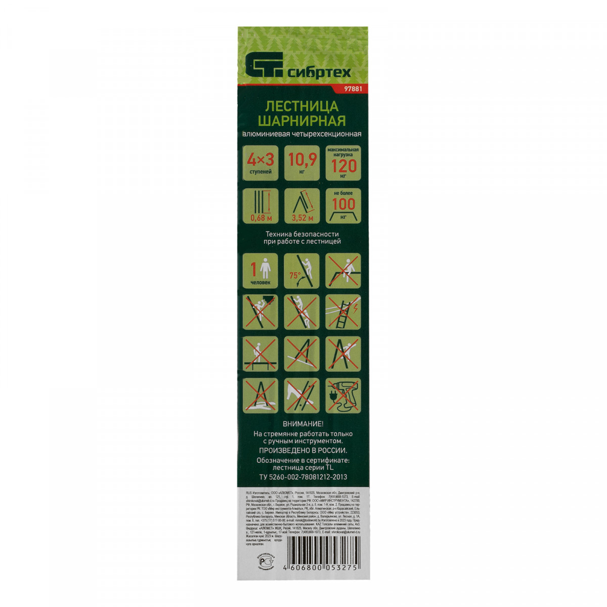 Шарнирная алюминиевая лестница Сибртех 97881 представляет собой 4 секции по 3 ступени, которые можно настроить в нескольких рабочих положениях. Она может использоваться в качестве приставной лестницы, двухсторонней стремянки и помоста. Будет полезна как в быту, так и на небольших стройках, в гараже и магазинах.