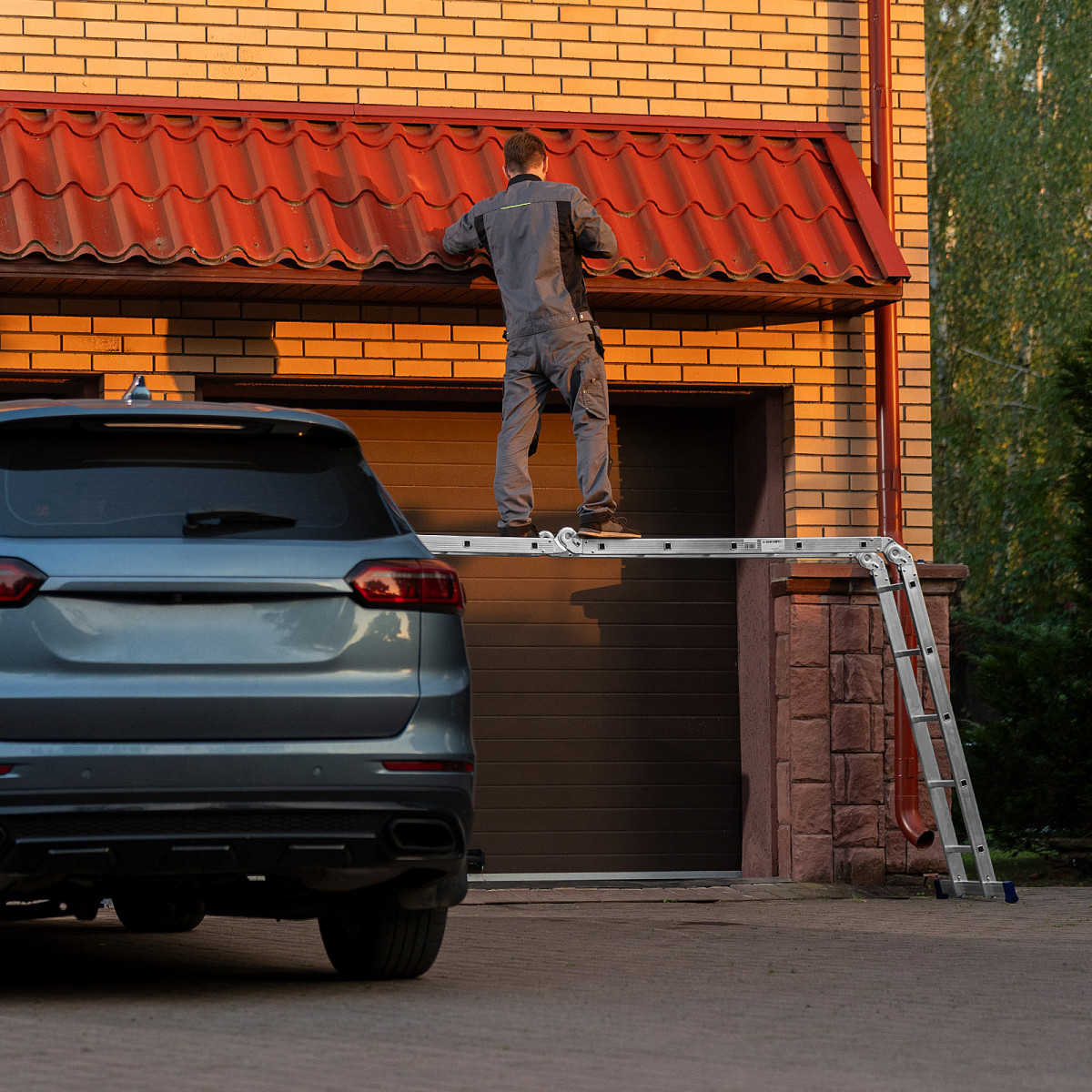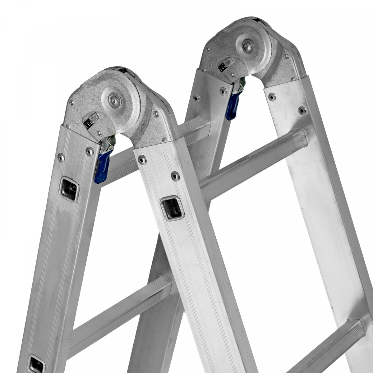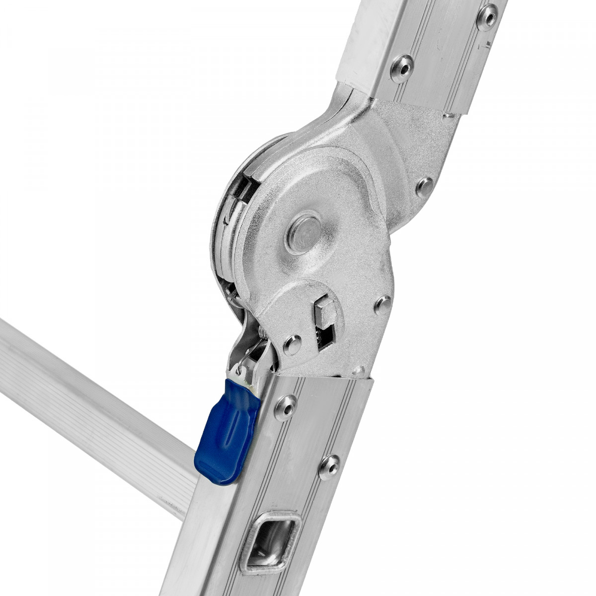Надежные шарнирные механизмы обеспечивают устойчивость лестницы в любом рабочем положении.