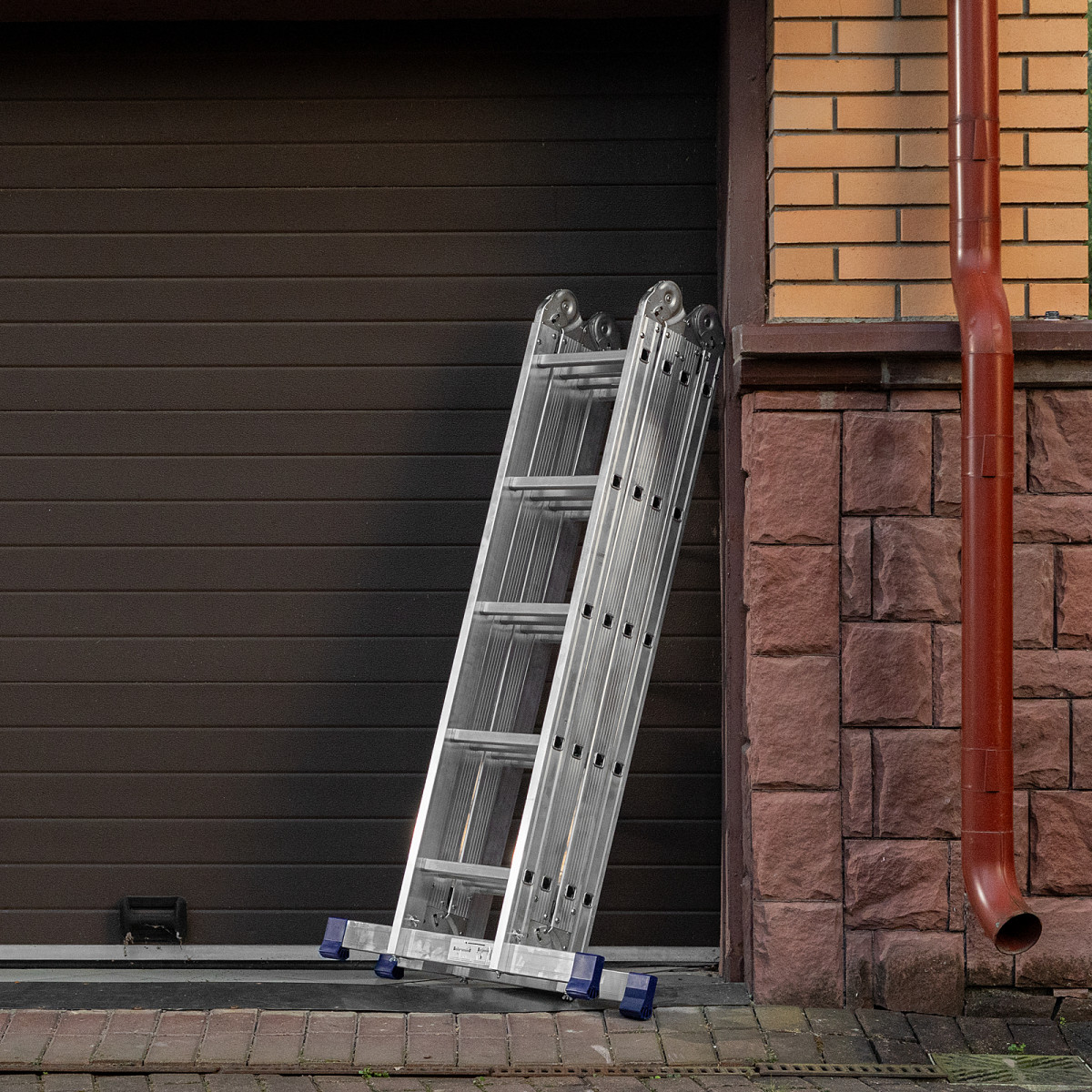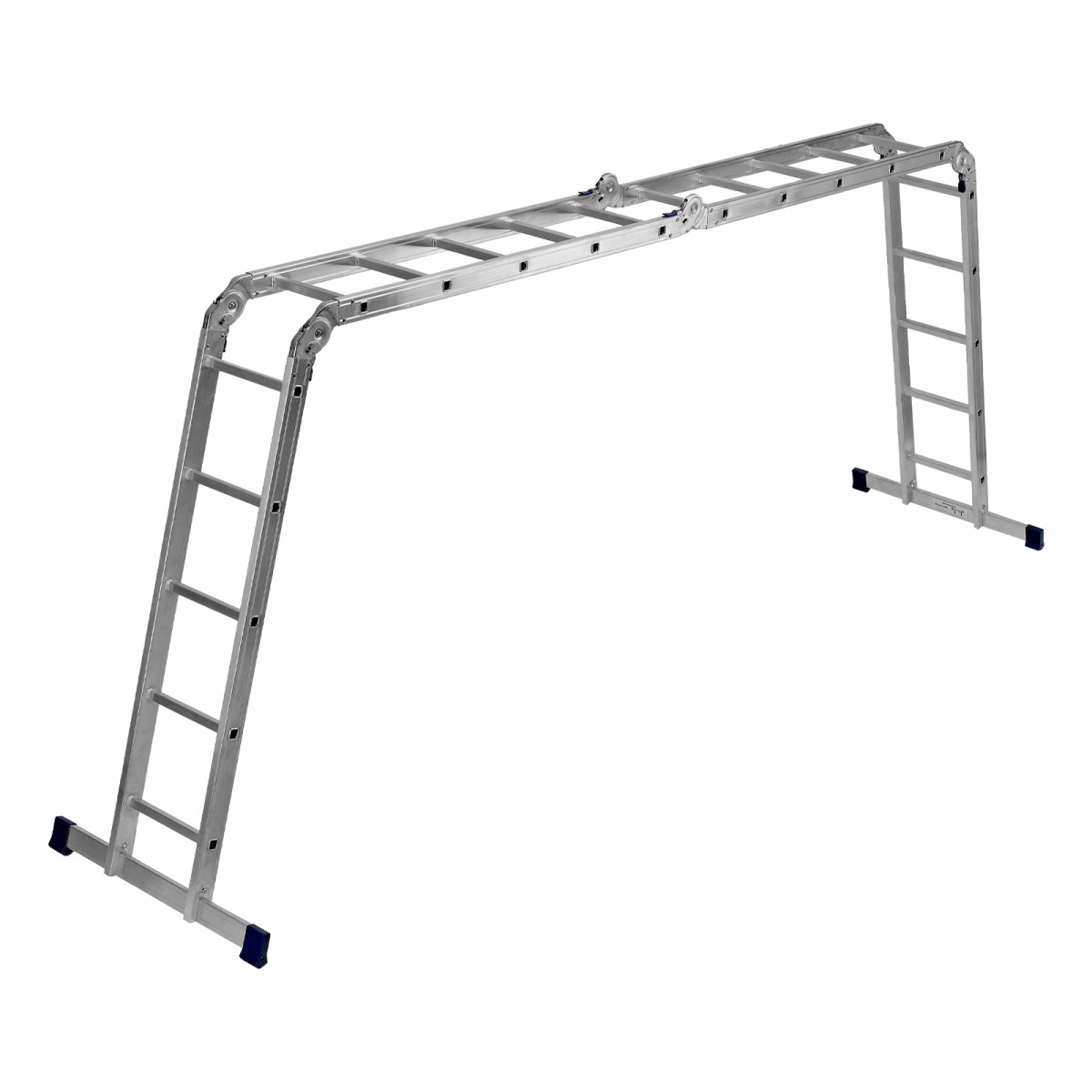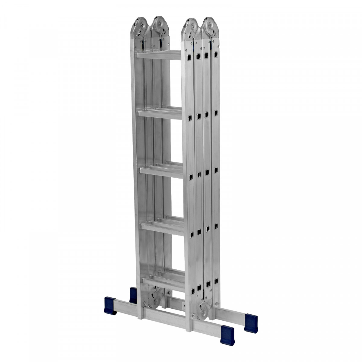 Шарнирная алюминиевая лестница Сибртех 97883 представляет собой 4 секции по 5 ступеней, которые можно настроить в нескольких рабочих положениях. Она может использоваться в качестве приставной лестницы, двухсторонней стремянки и помоста. Будет полезна как в быту, так и на небольших стройках, в гараже и магазинах.
