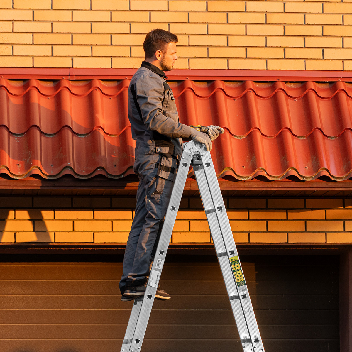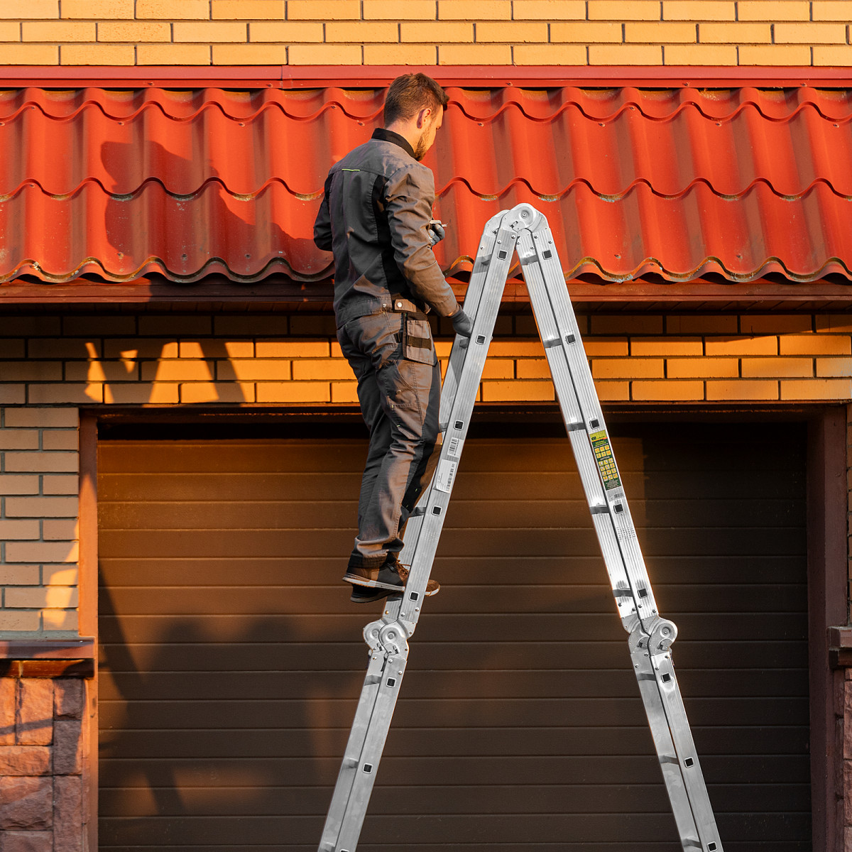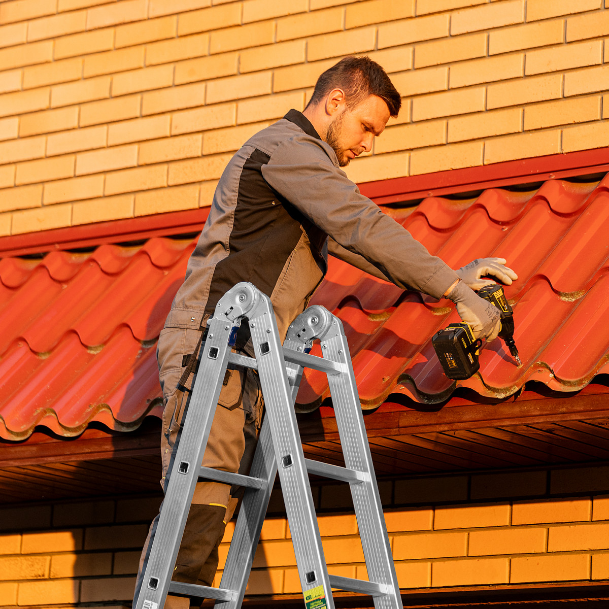 Шарнирная алюминиевая лестница Сибртех 97883 представляет собой 4 секции по 5 ступеней, которые можно настроить в нескольких рабочих положениях. Она может использоваться в качестве приставной лестницы, двухсторонней стремянки и помоста. Будет полезна как в быту, так и на небольших стройках, в гараже и магазинах.