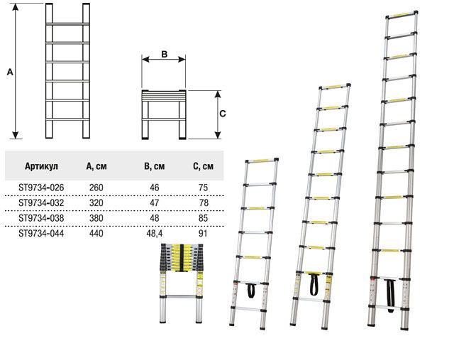 Лестница телескопическая 11 ступ. STARTUL