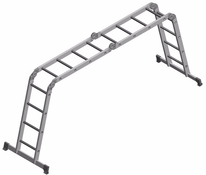 Лестница-трансформер Новая Высота 4х4 604404 оснащена специальными насадками из термоэластопласта, что исключает ее скольжение по поверхности рабочей площадки. Использование легированного алюминия обеспечивает малый вес модели и способствует ее высокой устойчивости к образованию коррозии. Благодаря этому приспособление активно применяется на открытой местности. Укрепление несущей конструкции дополнительными ребрами жесткости позволяет модели выдерживать нагрузку до 150 кг. Качественные шарнирные замки дают возможность применять лестницу как приставную односекционную, приставную согнутую, стремянку и помост. Поставка изделия в термоусадочной пленке гарантирует его доставку без царапин и загрязнения. Нескользящие рельефные ступени способствуют безопасной эксплуатации приспособления.