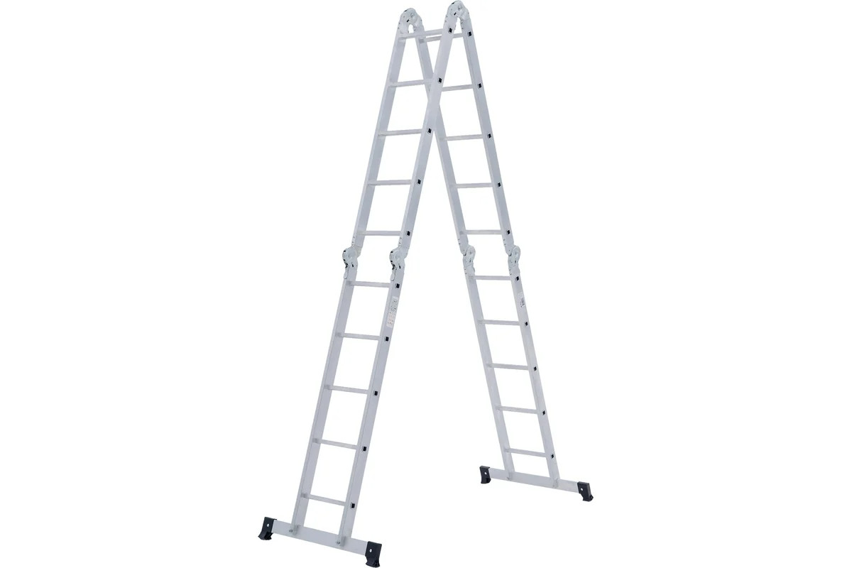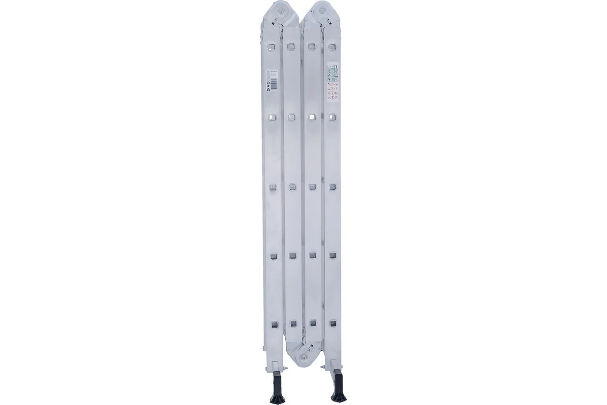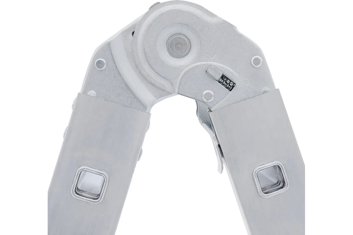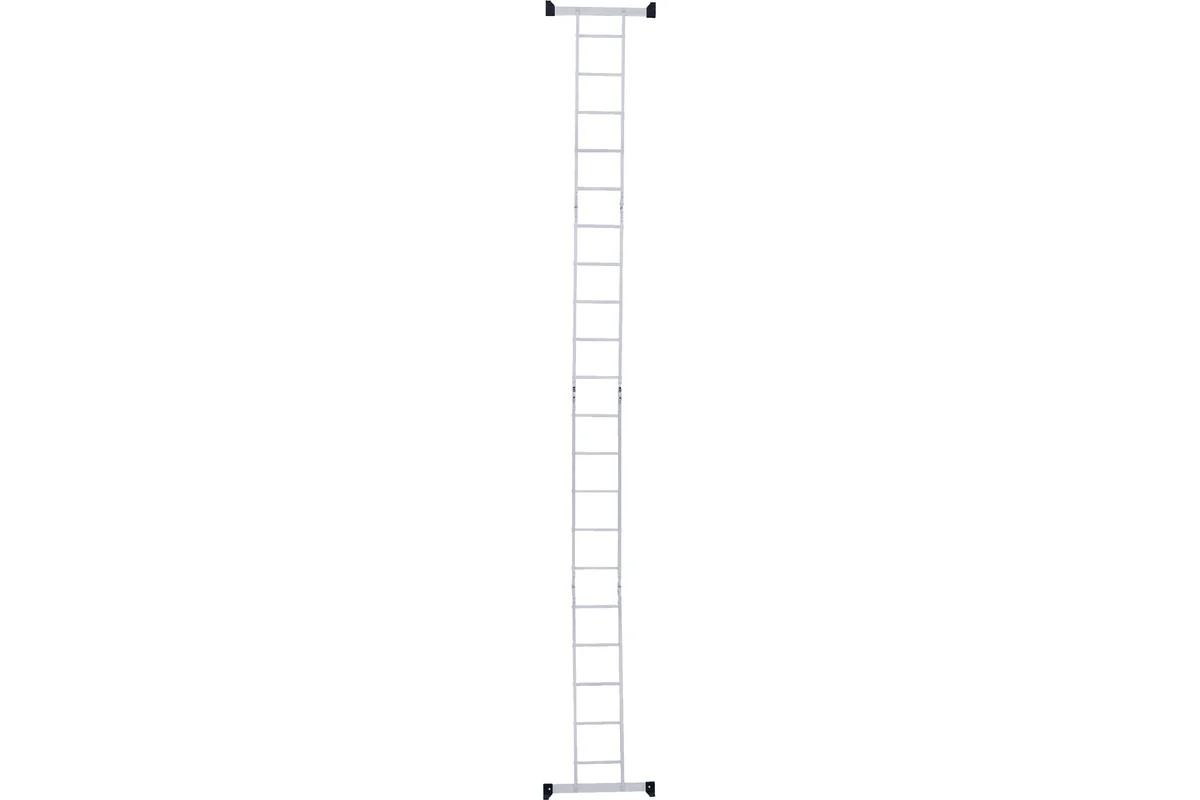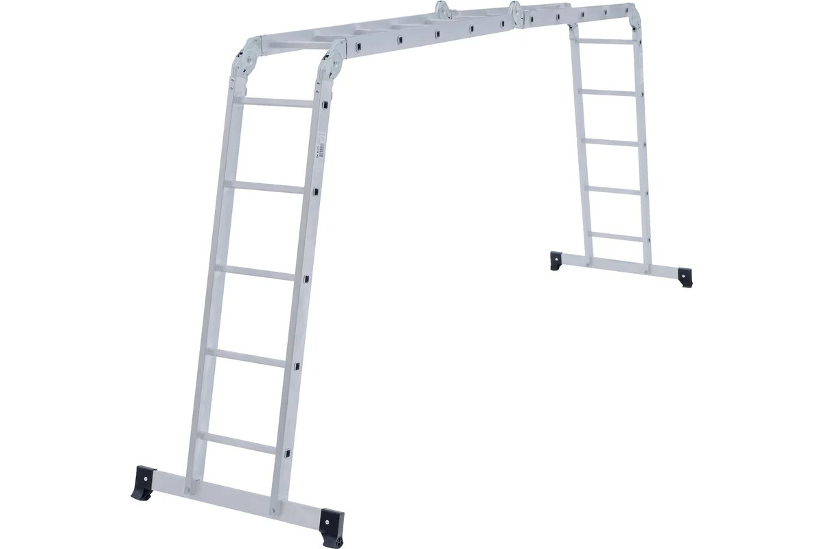 Четырехсекционная лестница-трансформер Новая Высота 4х5 1320405 предназначена для бытового использования. Легко трансформируется в помост, стремянку, приставную лестницу, лестницу с выносом. Оснащена стойками с дополнительным усилением в наиболее нагруженных местах для повышения жесткости. Шарнирные замки регулируются одной рукой. Благодаря многократной развальцовке в соединении ступеней со стойками изделие имеет долгий срок службы.