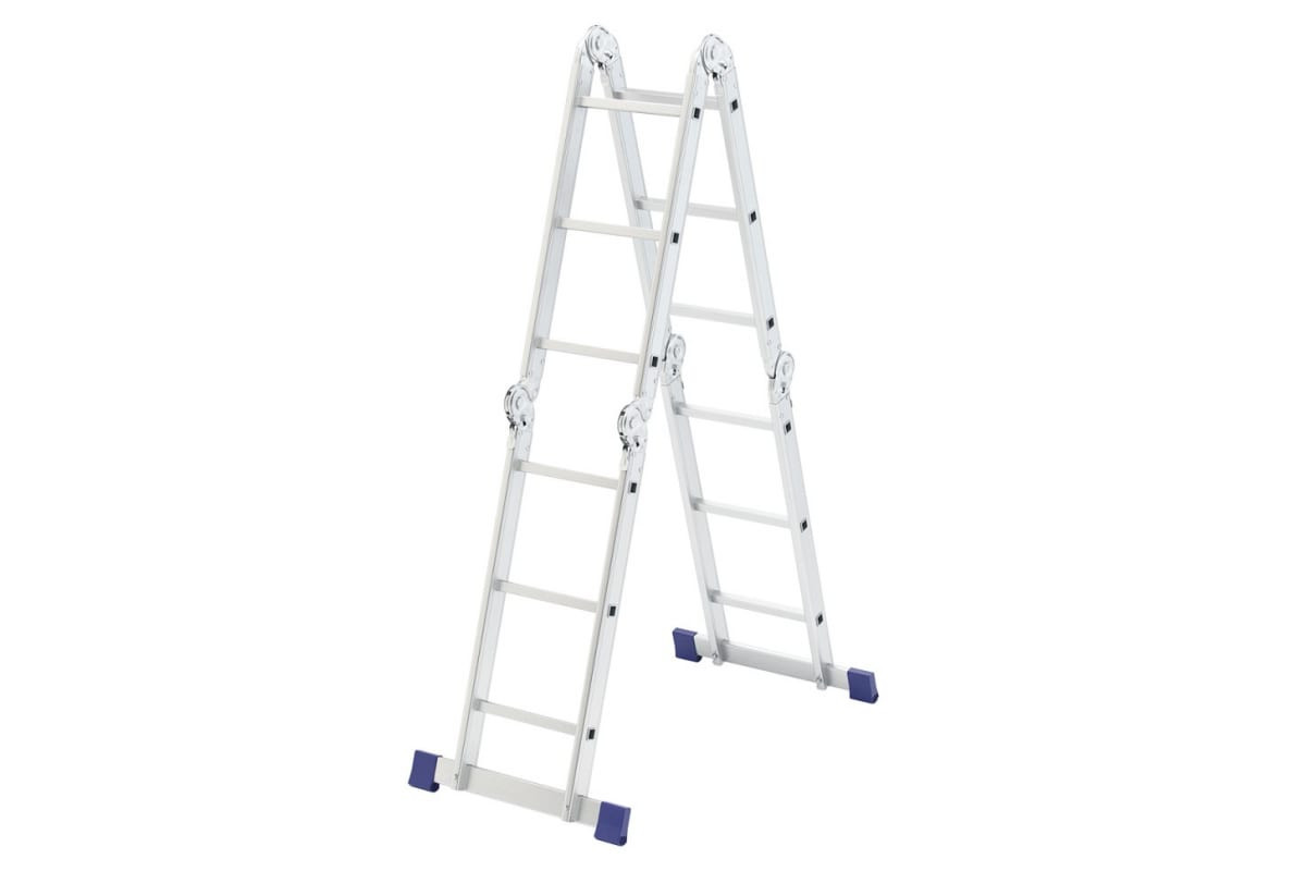 Шарнирная алюминиевая лестница СИБРТЕХ 4х3 97881 может трансформироваться в зависимости от выполняемых работ.