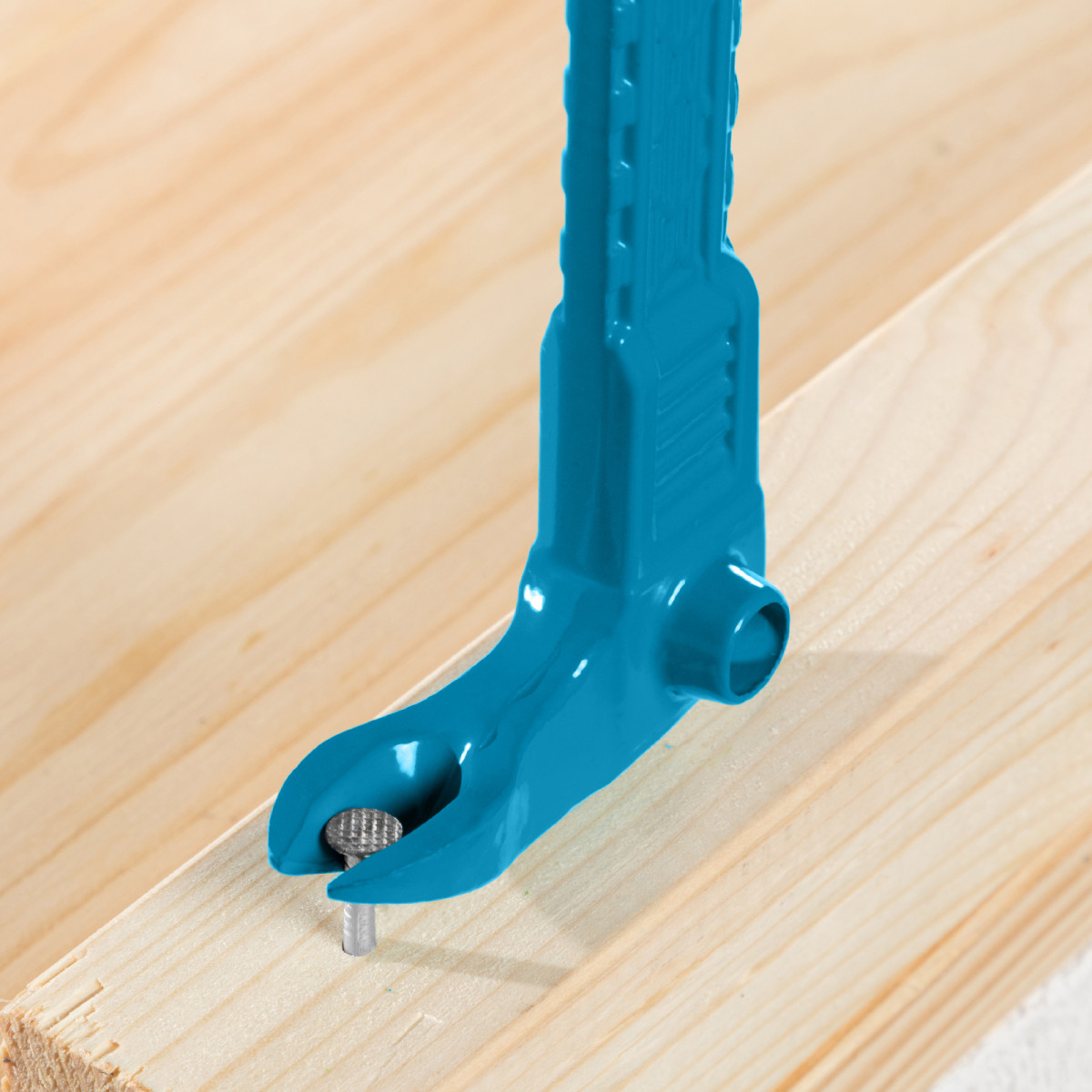 Лом-гвоздодер Gross мини 25251 размером 250 х 21 х 9 мм позволяет легко извлекать даже гвозди с глубоко утопленными шляпками — справляться с ними помогает специальный выступ на рабочей части инструмента. Лом-гвоздодер будет полезен на строительной площадке, во время ремонта, а также при решении бытовых задач.