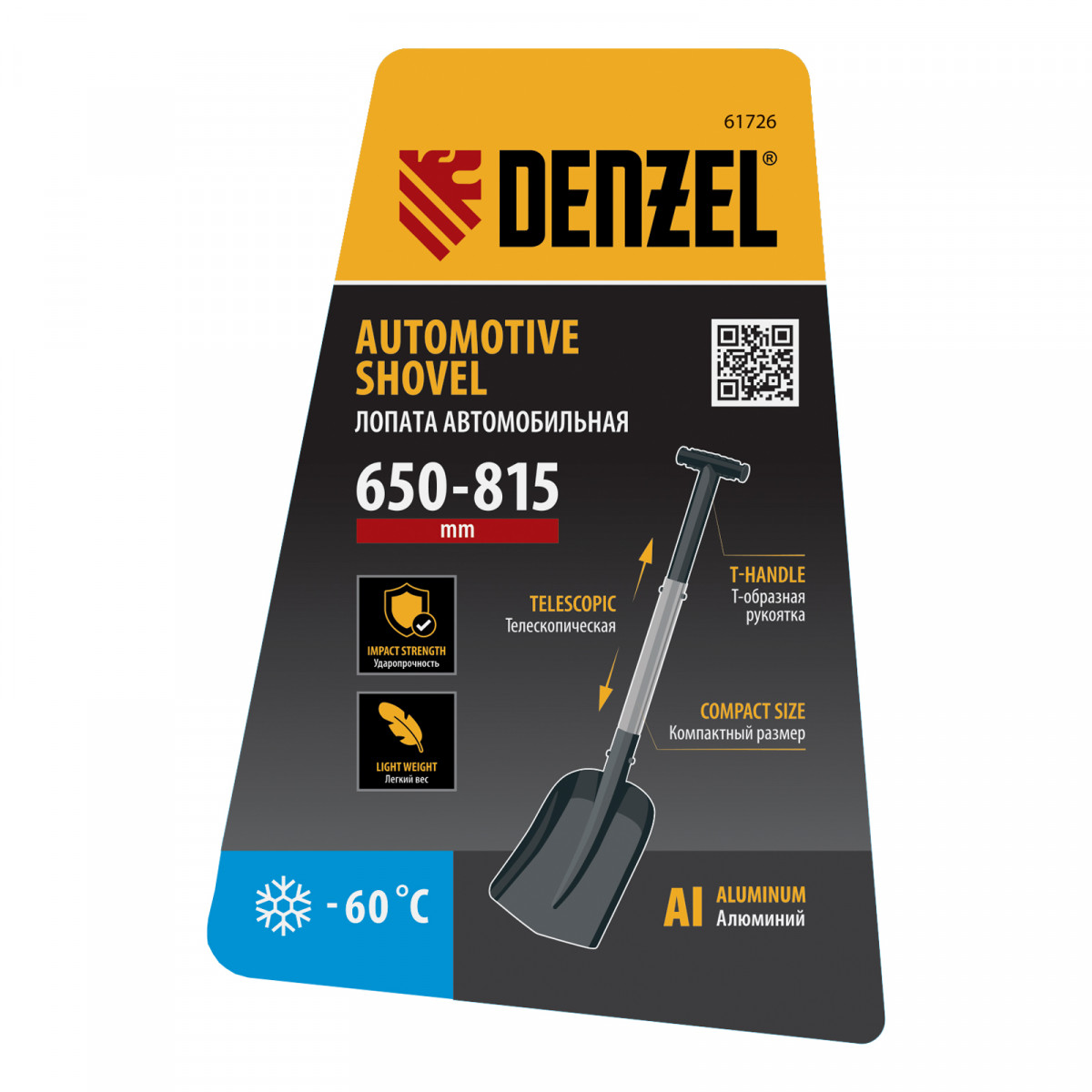 Лопата автомобильная, алюминиевая, 212х280х650-815 мм, телескопический черенок Denzel