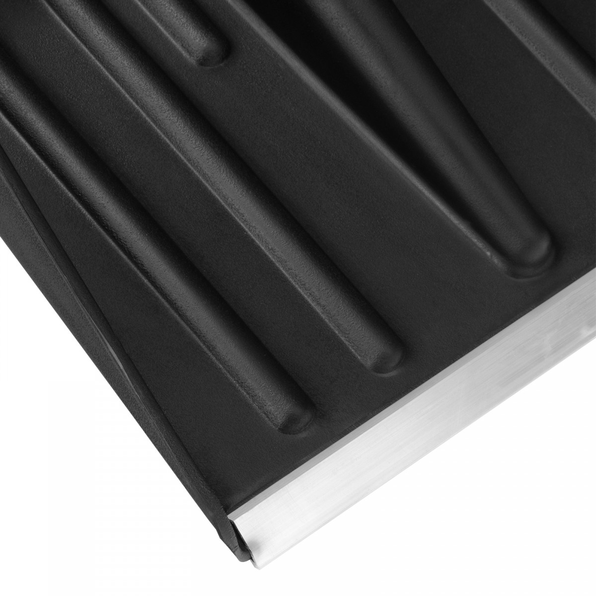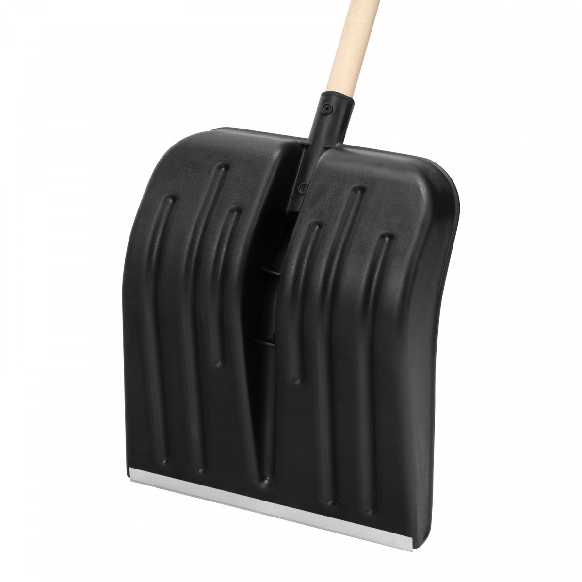 - Эффективная работа — углубленный ковш с бортиками вмещает много снега, а защитная накладка из алюминиевого сплава предотвращает износ кромки и облегчает очистку слежавшегося снега и наста.