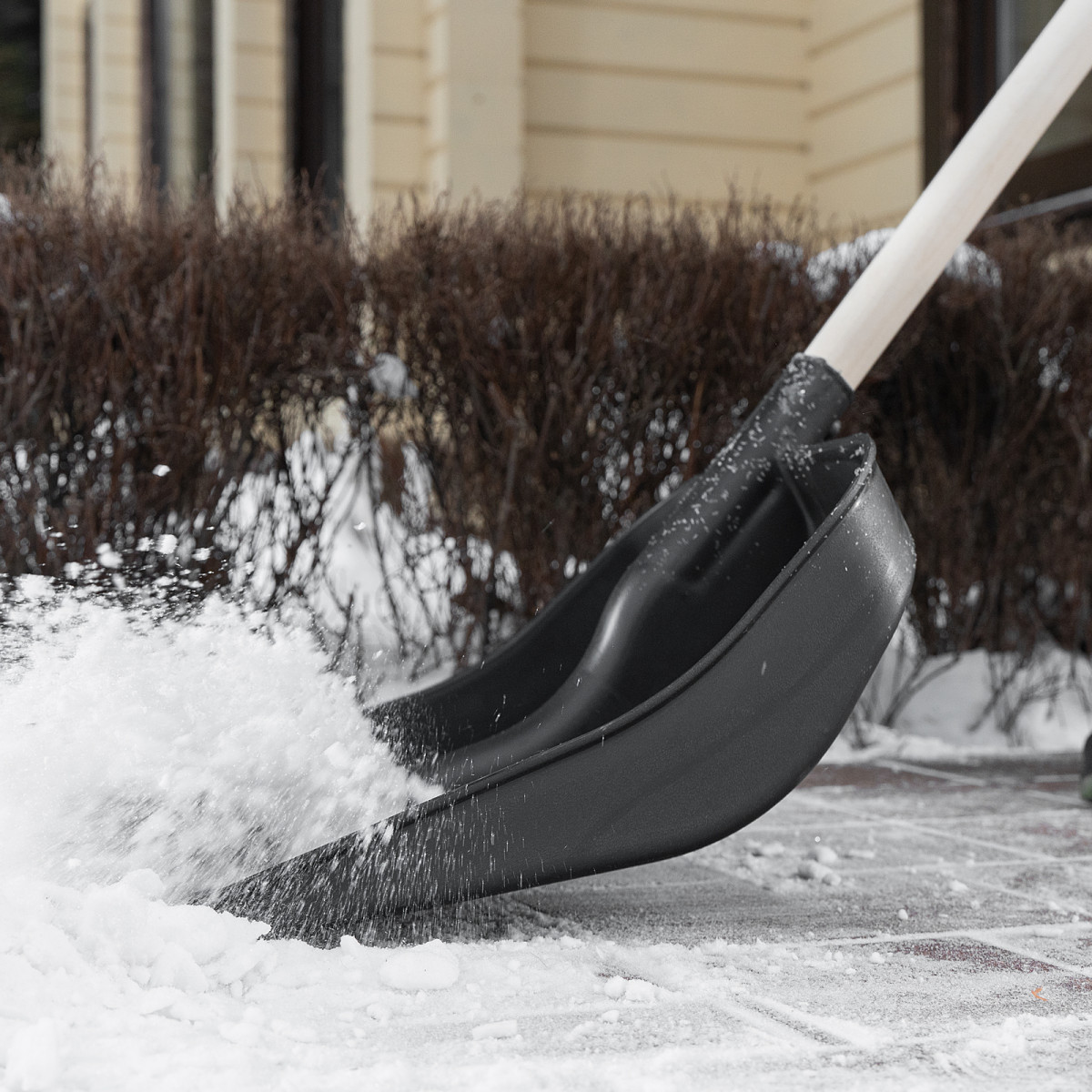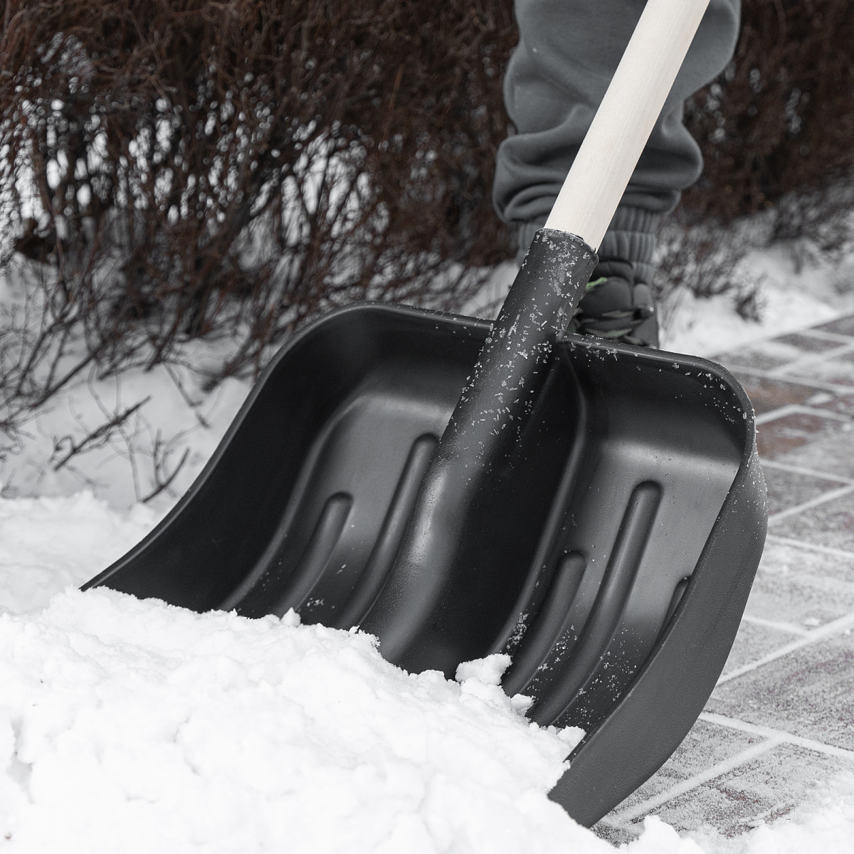 Лопата для уборки снега пластиковая, 360 х 405 х 1550 мм, деревянный черенок в/с, Сибртех