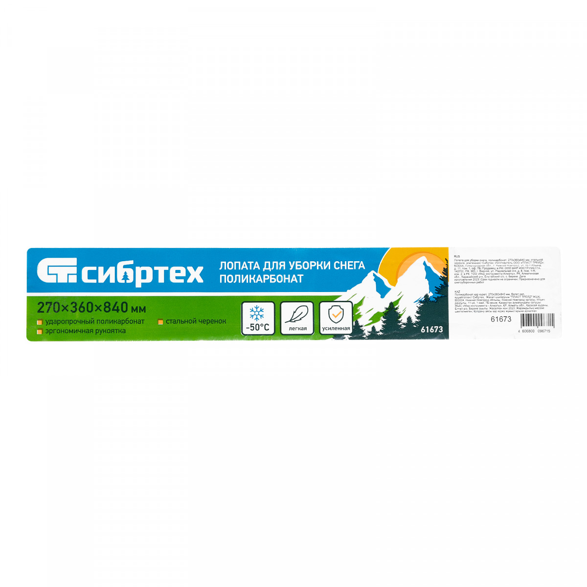 Лопата для уборки снега, поликарбонат, 270х360х840 мм, стальной черенок, усиленная Сибртех