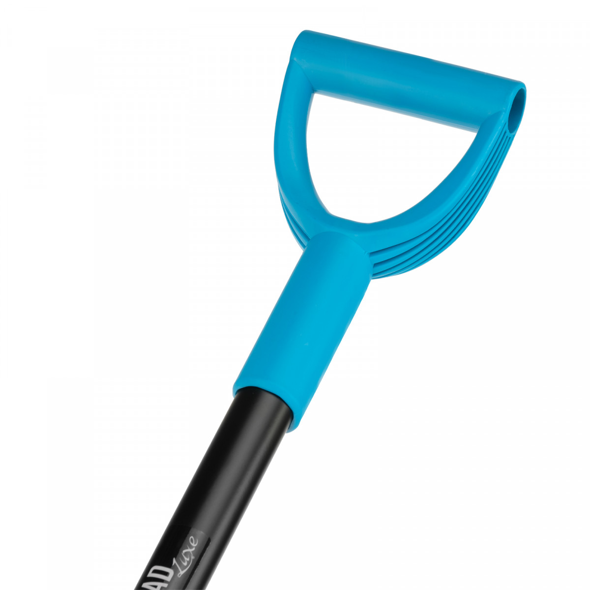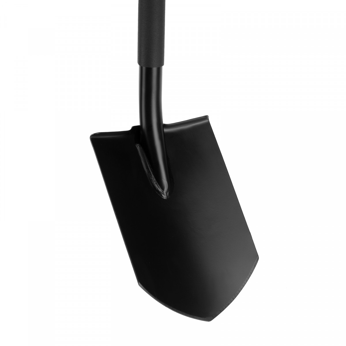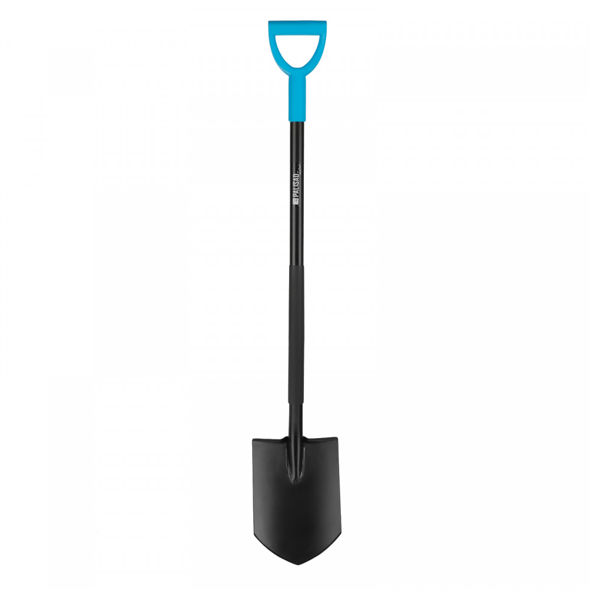 - Комфортная работа — за счет резиновой накладки черенок не выскальзывает из рук, лопатой удобно пользоваться даже в холодное время года.