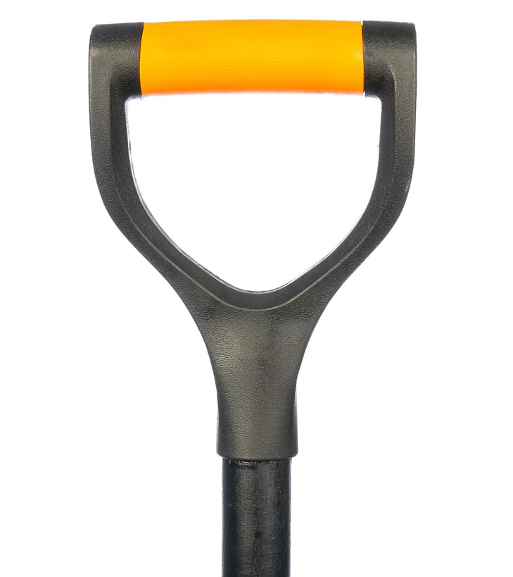 Высококачественный, морозоустойчивый, ударопрочный пластик Алюминиевая окантовка по внешнему рабочему канту Деревянный черенок высшего сорта Эргономичная двухкомпонентная рукоятка 3 года гарантия на пластик