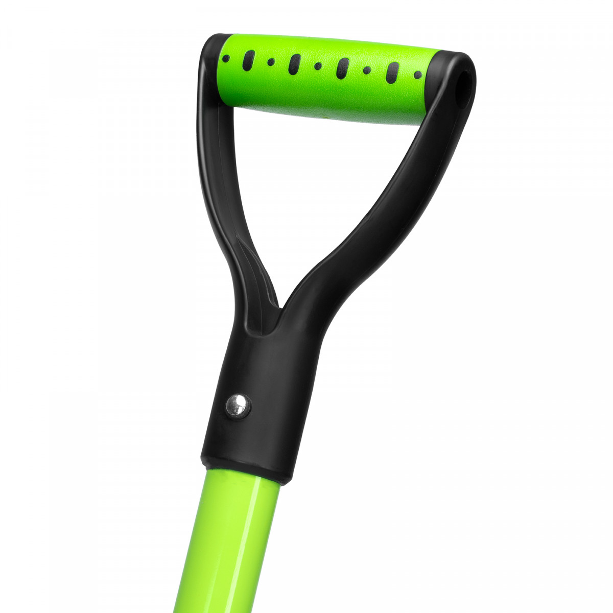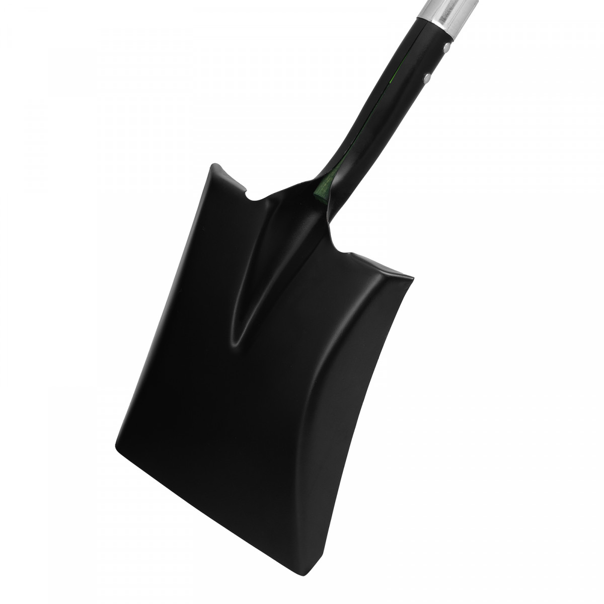 - Продуманная конструкция — фибергласовый черенок не утяжеляет лопату и не разрушается под действием ультрафиолета, а удлиненная цельновырубная тулейка предотвращает его излом.