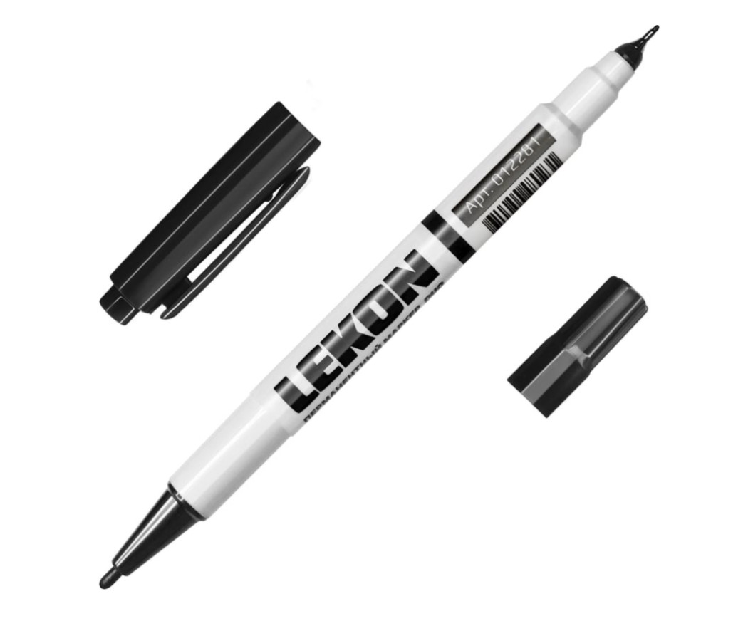 Маркер перманентный двухсторонний фетровый 0,5-1мм черный LEKON DUO