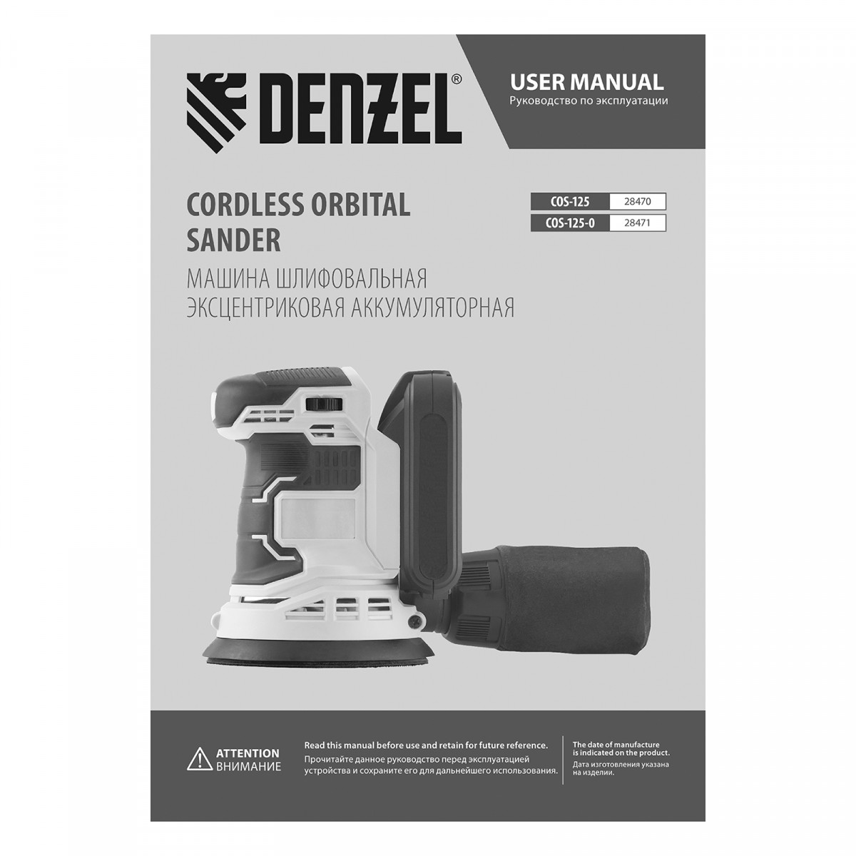 Машина шлифовальная эксцентриковая аккумуляторная COS-125-0, 18В Li-Ion Denzel