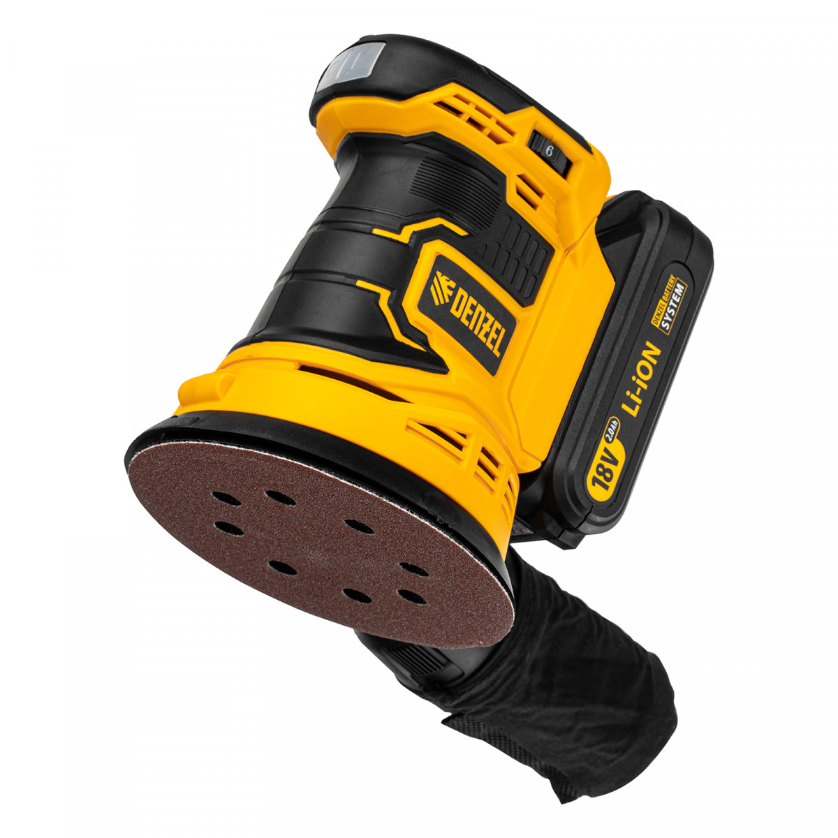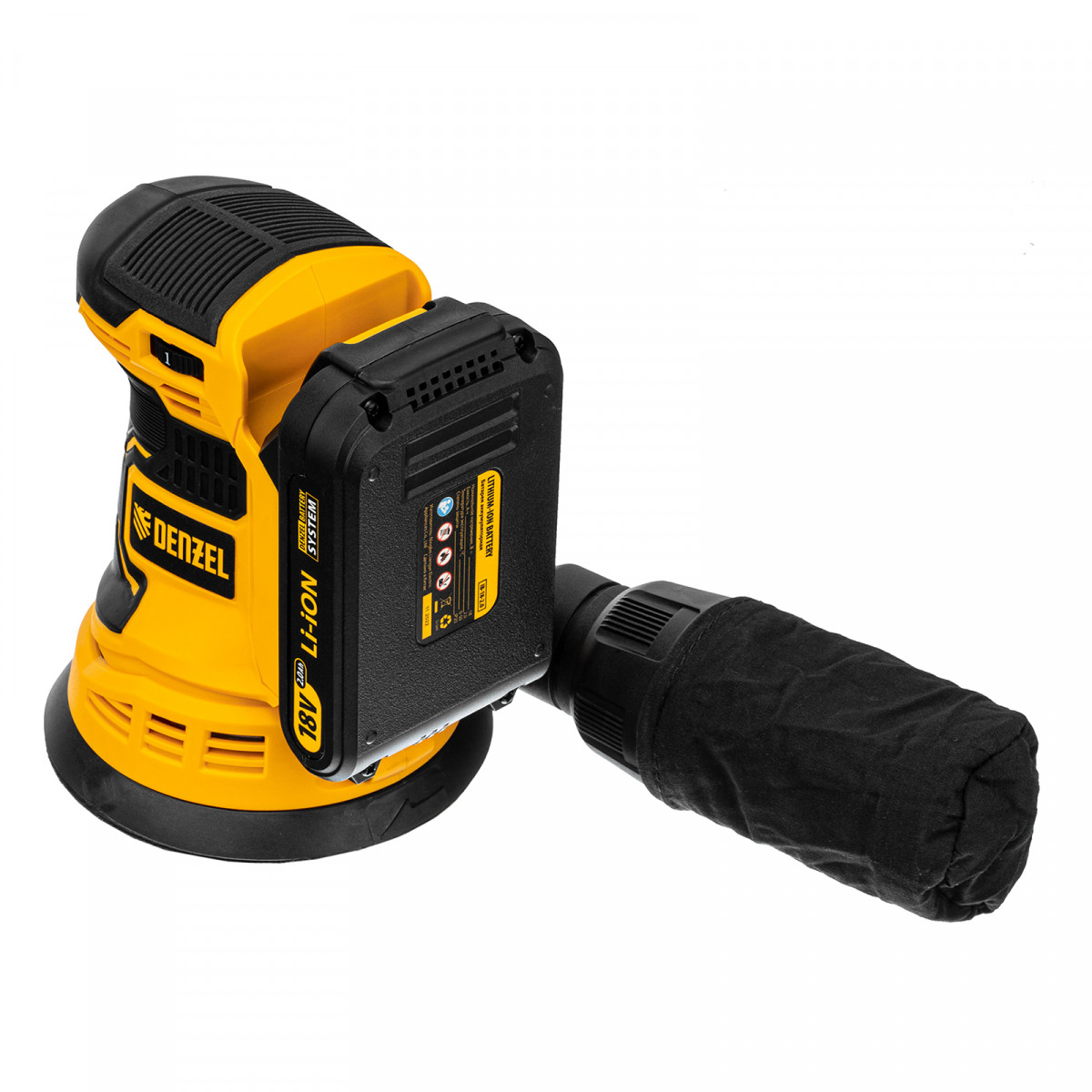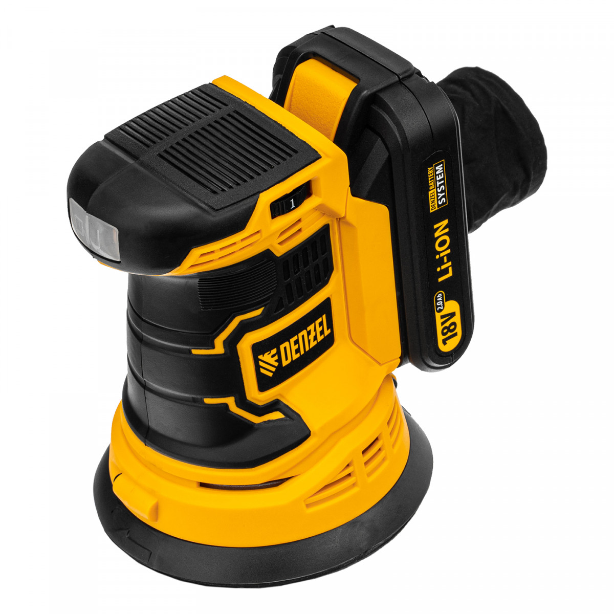Машина шлифовальная эксцентриковая аккумуляторная COS-125, 18В Li-Ion Denzel