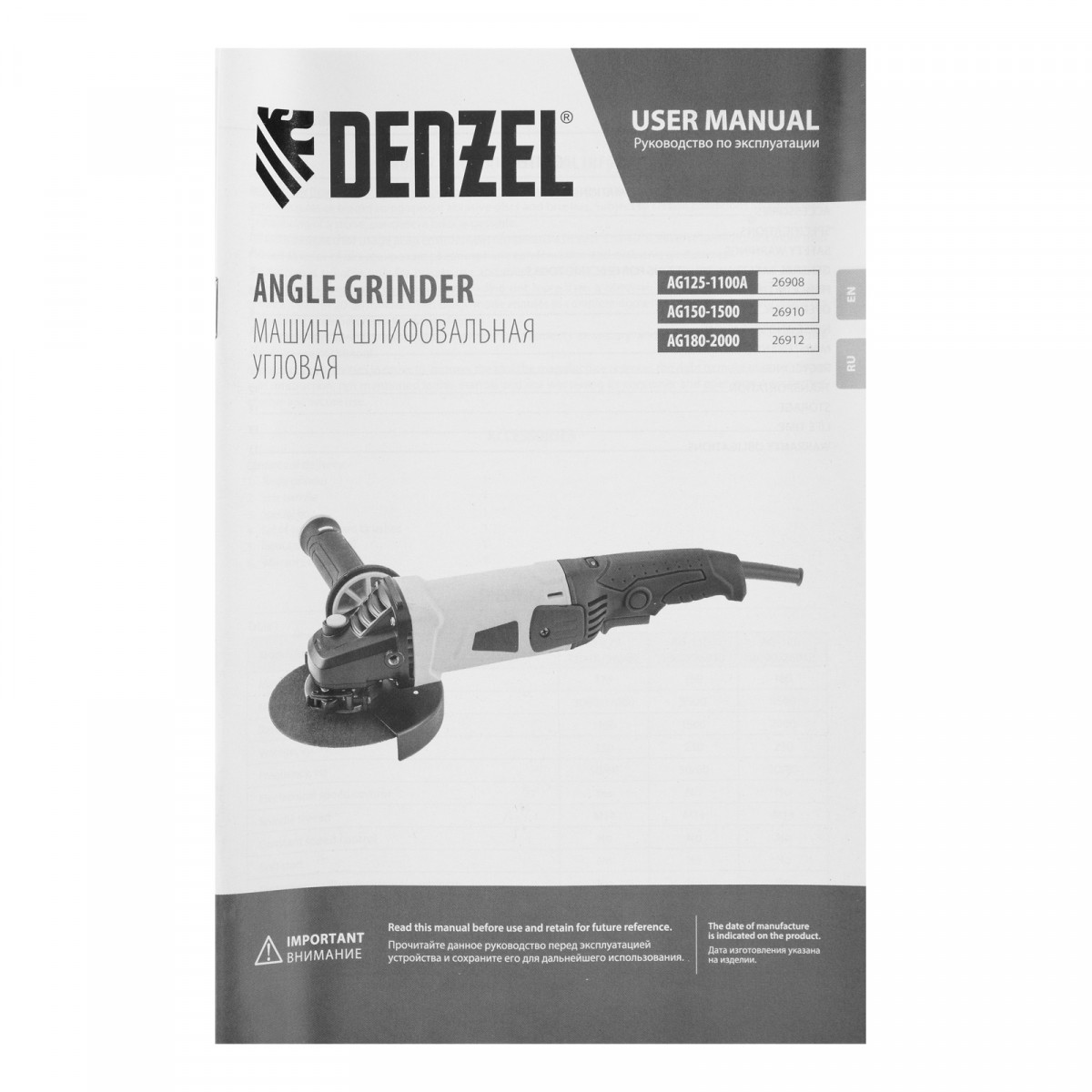 Машина шлифовальная угловая AG150-1500, 1500 Вт, 150 мм, 8500 об/мин Denzel