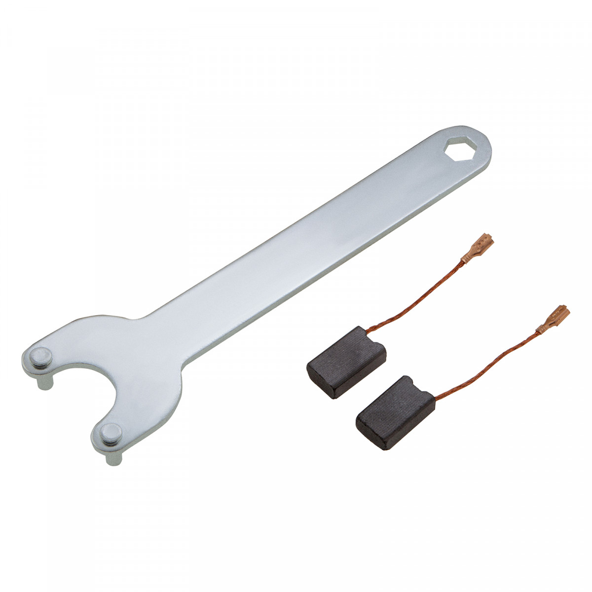 - Угольные щетки и специальный ключ в комплекте — их не придется докупать отдельно.