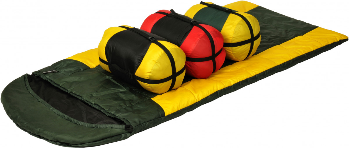 При желании из двух спальных мешков состегивается один двухместный спальник шириной 150 см.