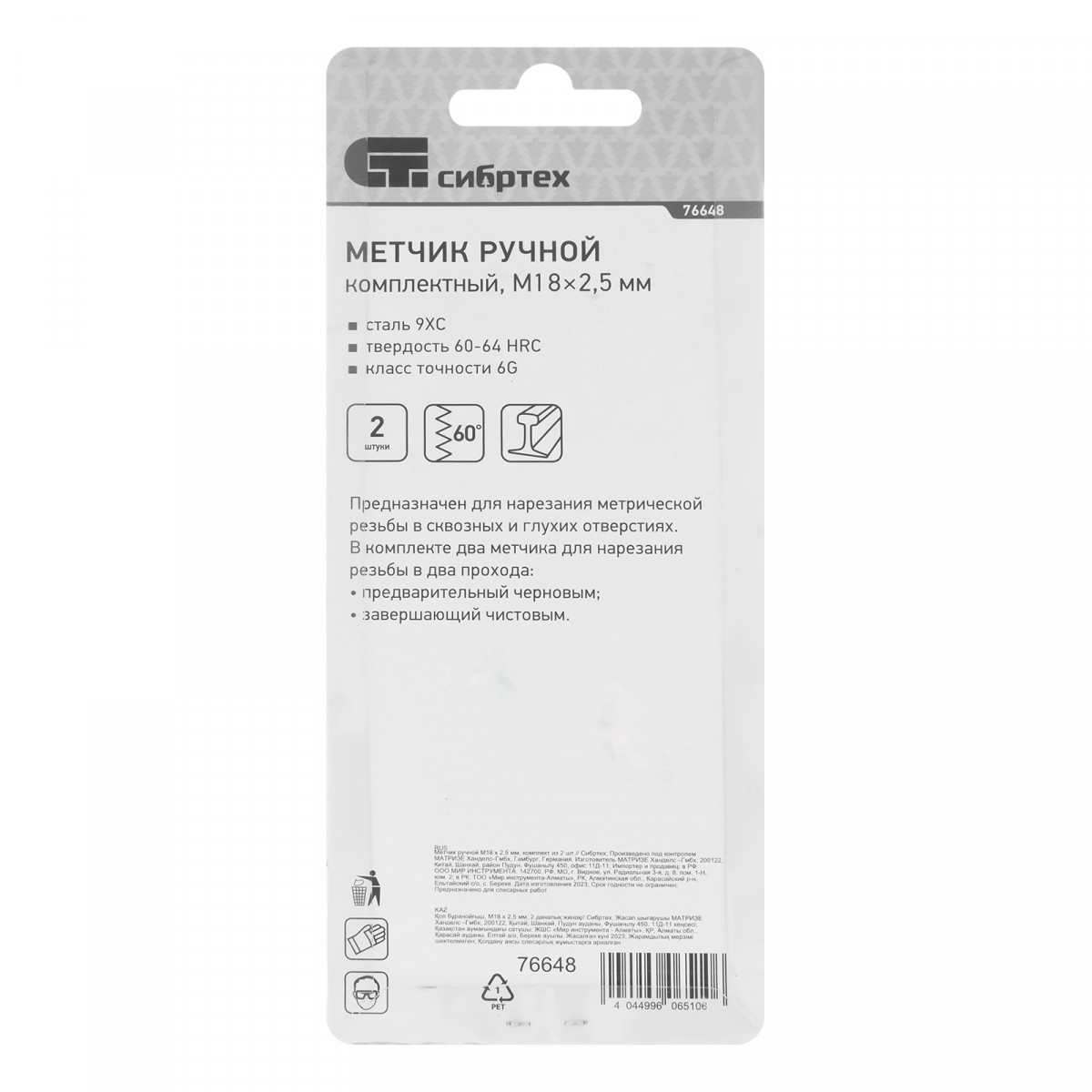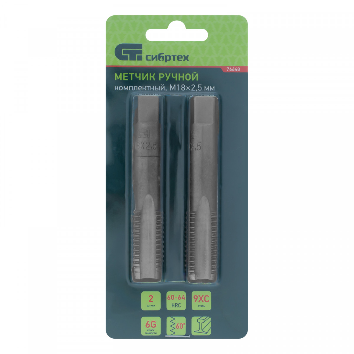 Метчик ручной М18 х 2.5 мм, комплект из 2 шт Сибртех