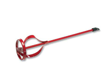 Представляет собой металлическую окрашенную насадку для электроинструмента. Предназначен для смещивания красок и штукатурных смесей. Масса перемешиваемого материала – 12–15 кг. Размеры: 85 х 8 х 400 мм