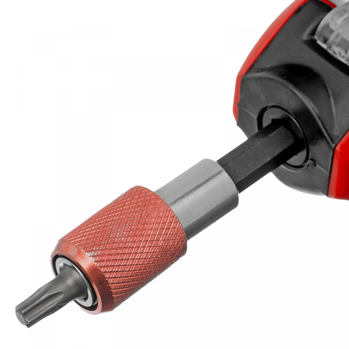 Магнитный адаптер с зажимным механизмом обеспечивает надежное крепление бит, ускоряя процесс работы.