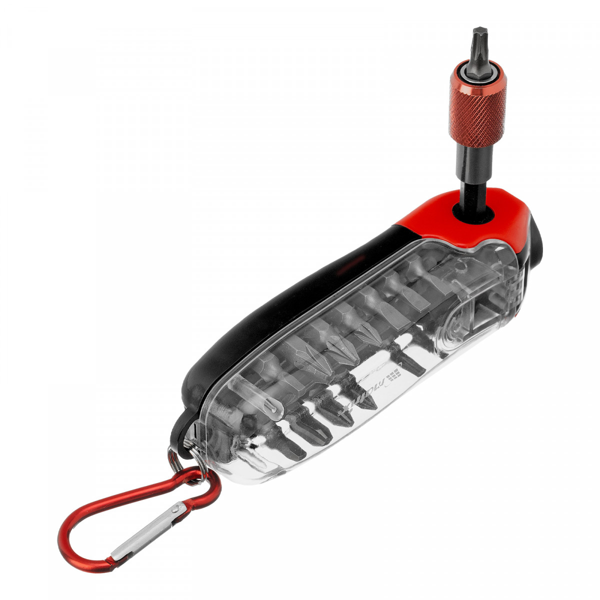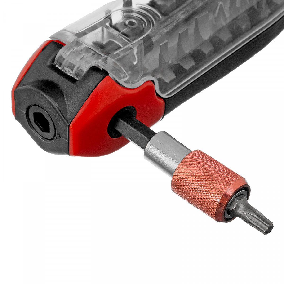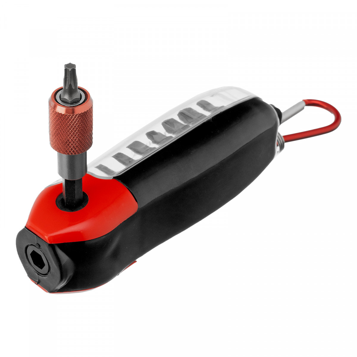 - Продуманная конструкция — благодаря встроенному присоединительному шестиграннику для битодержателя бокс при необходимости трансформируется в отвертку.